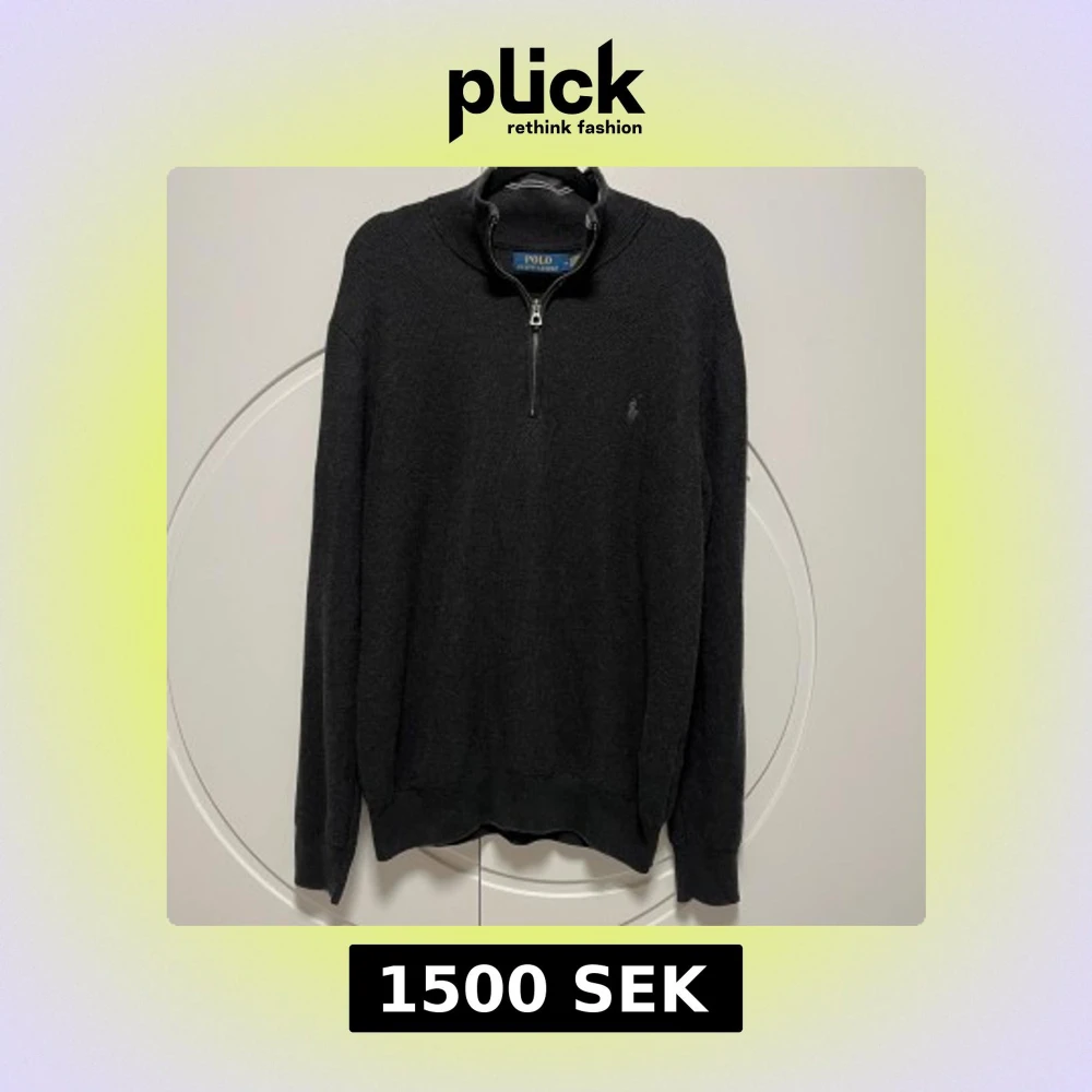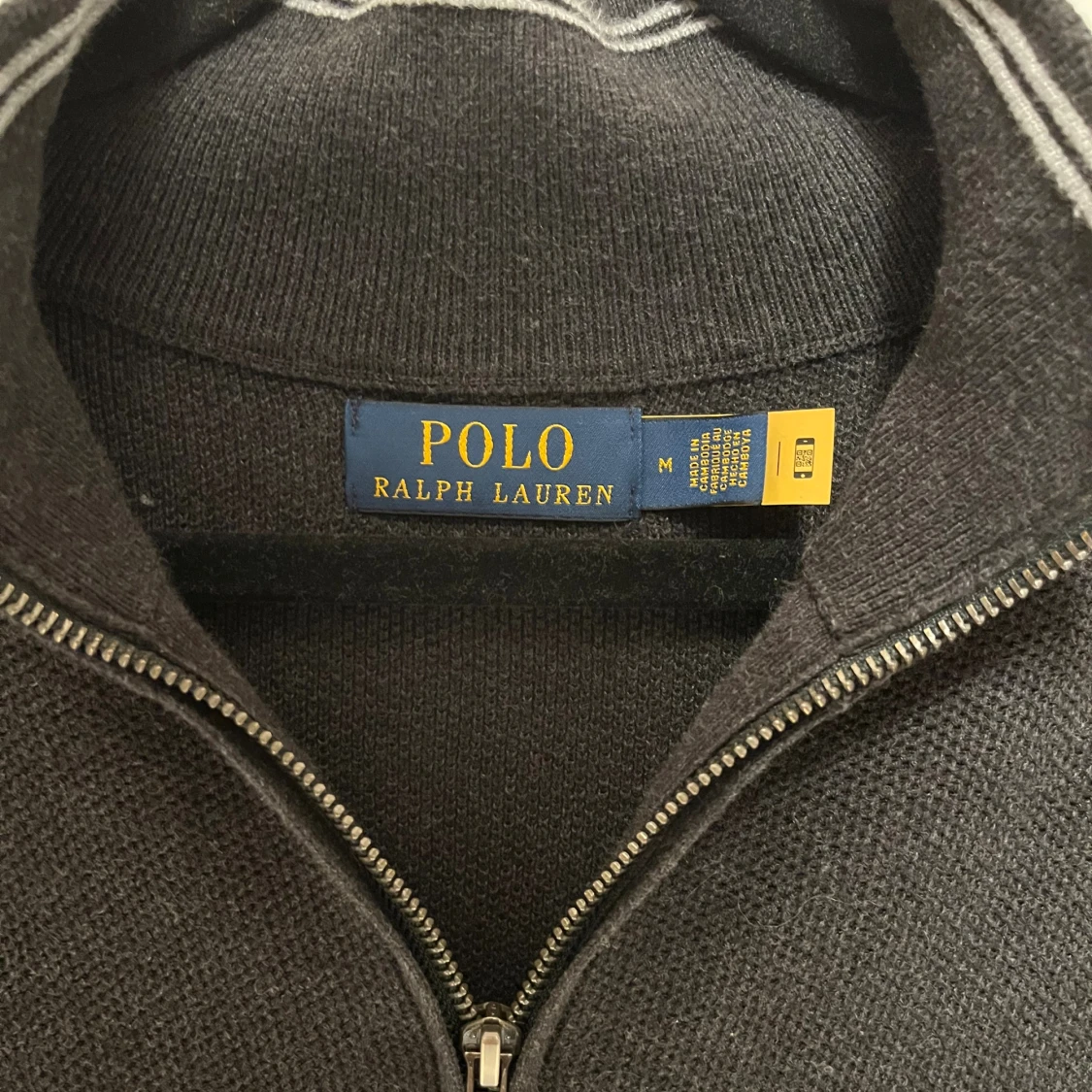 Svart stickad tröja från Polo Ralph Lauren med halv dragkedja och klassisk broderad logga på bröstet. Tröjan har hög krage och långa ärmar, perfekt för lager-på-lager under kyliga dagar. Snygg och tidlös modell som funkar till allt.