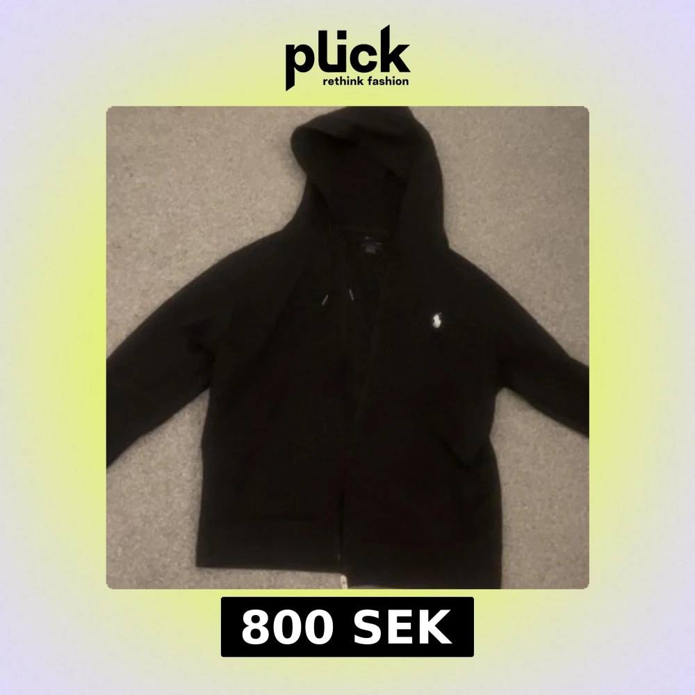 Svart hoodie från Ralph Lauren med dragkedja och huva. Klassisk vit logga broderad på bröstet och snörning i huvan. Perfekt för en chill och stilren look.