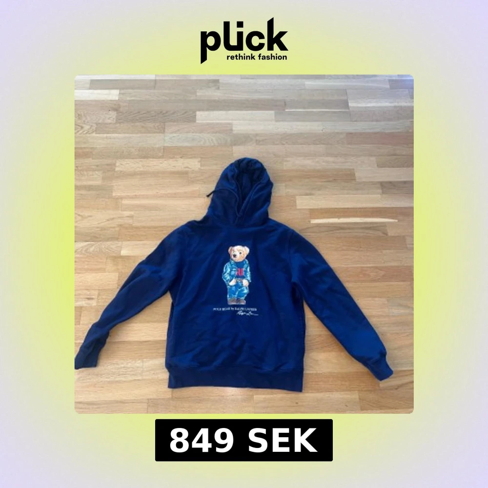 Säljer en mörkblå hoodie från Ralph Lauren med den ikoniska Polo Bear-trycket på bröstet. Tröjan har huva med snörning och långa ärmar. Perfekt för dig som gillar streetstyle och vill ha något bekvämt och snyggt.