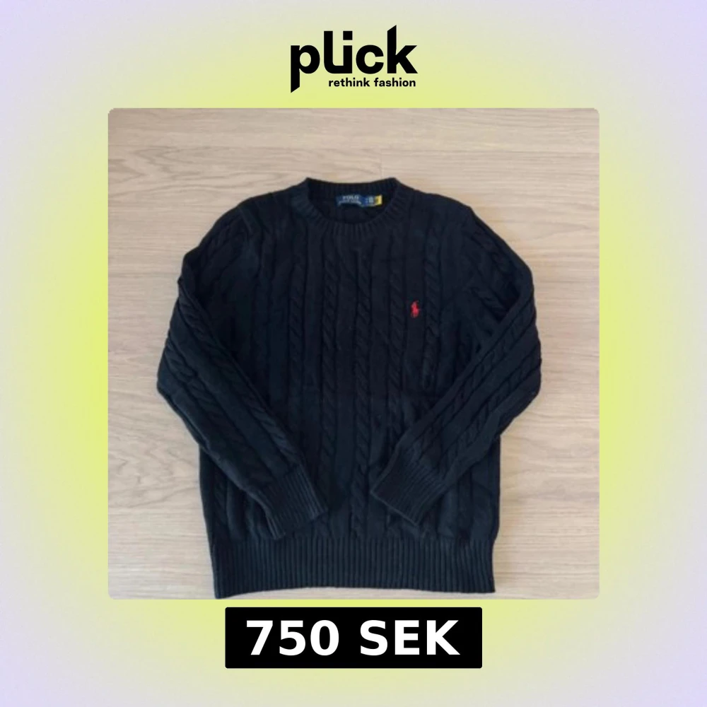 Svart kabelstickad tröja från Polo Ralph Lauren med klassisk röd logobrodyr på bröstet. Rund hals och ribbade muddar vid ärmslut och nederkant. Perfekt för dig som gillar stilren och tidlös design med en sportig touch.