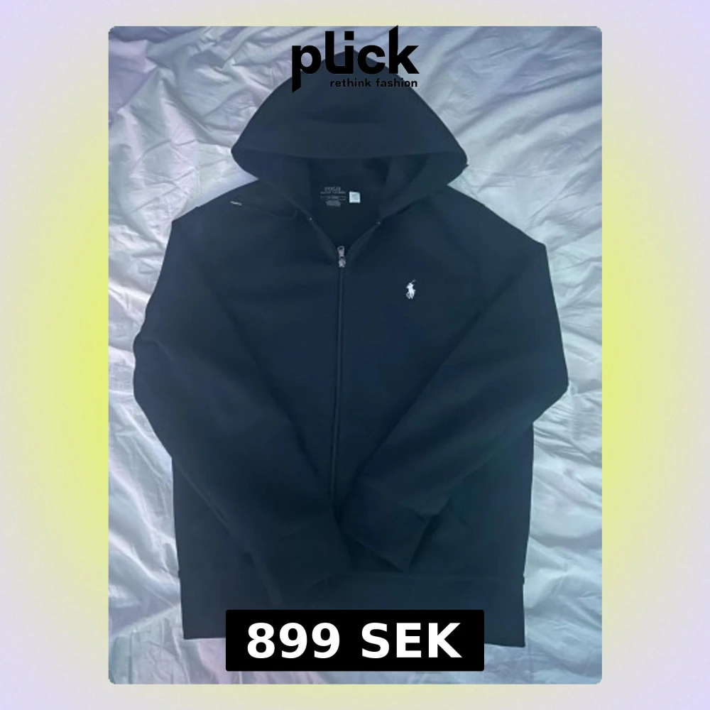 Svart hoodie från Polo Ralph Lauren med klassisk vit logga på bröstet. Tröjan har huva, hel dragkedja och långa ärmar. Materialet är mjuk bomull och polyester, perfekt för chill dagar. Snygg och enkel design som funkar till det mesta.