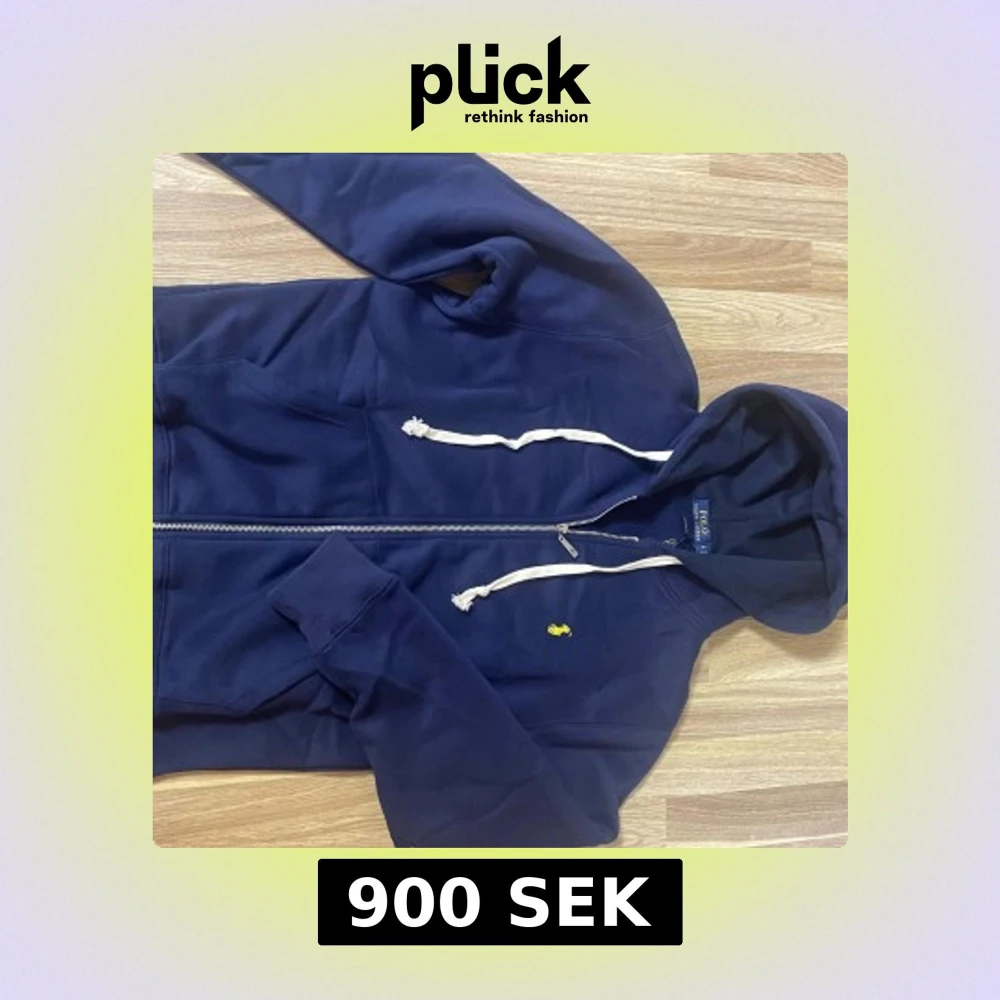 Säljer en snygg mörkblå hoodie från Polo Ralph Lauren med dragkedja och justerbar huva. Den har en liten gul logga på bröstet och är perfekt för en avslappnad stil.den är använd ett par gånger och är i nyskick med väldigt skönt material.