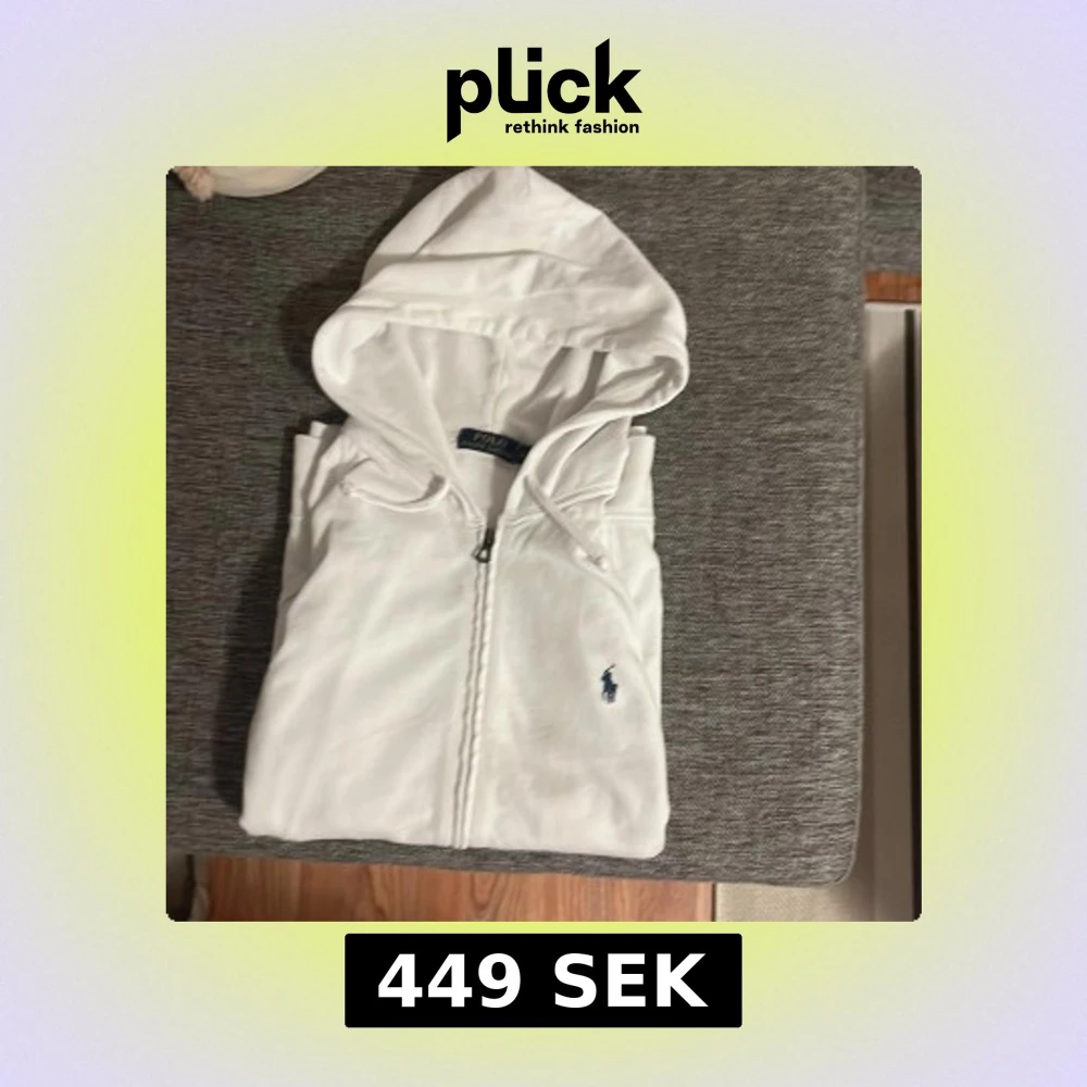 Säljer en stilren vit hoodie från Ralph Lauren med dragkedja. Tröjan är använd ett få antal gånger och är nästan som ny