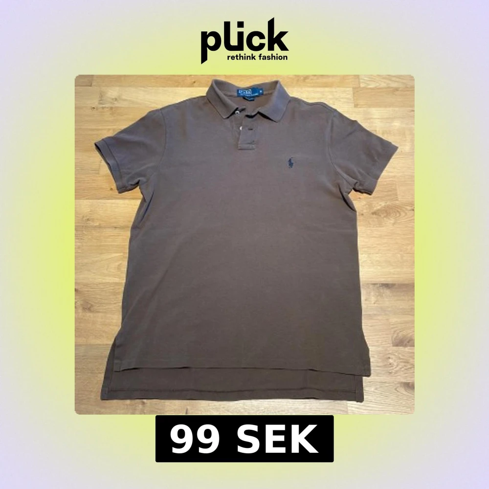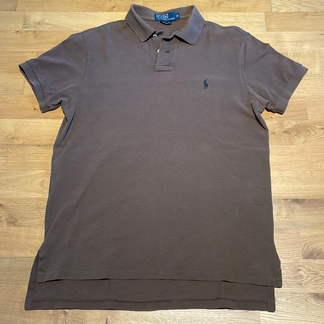 Säljer en brun pikétröja från Polo Ralph Lauren i storlek M. Klassisk krage, kort ärm och broderad logga på bröstet. Tröjan är i bomull och har en snygg, enkel design som funkar till det mesta. Custom fit-modell. Den är längre baktill. Storlek: M.