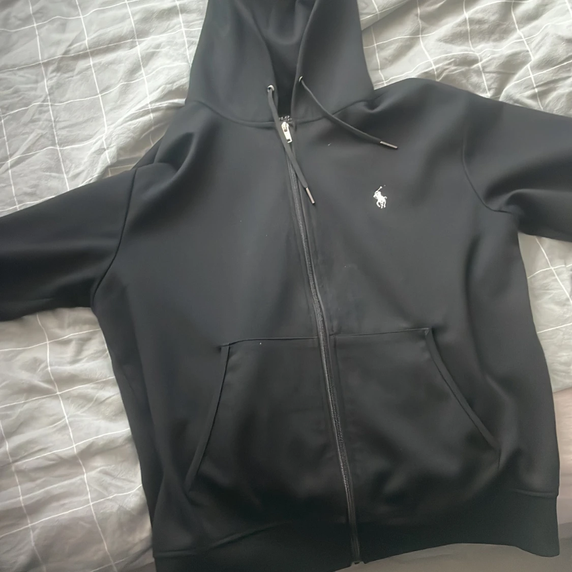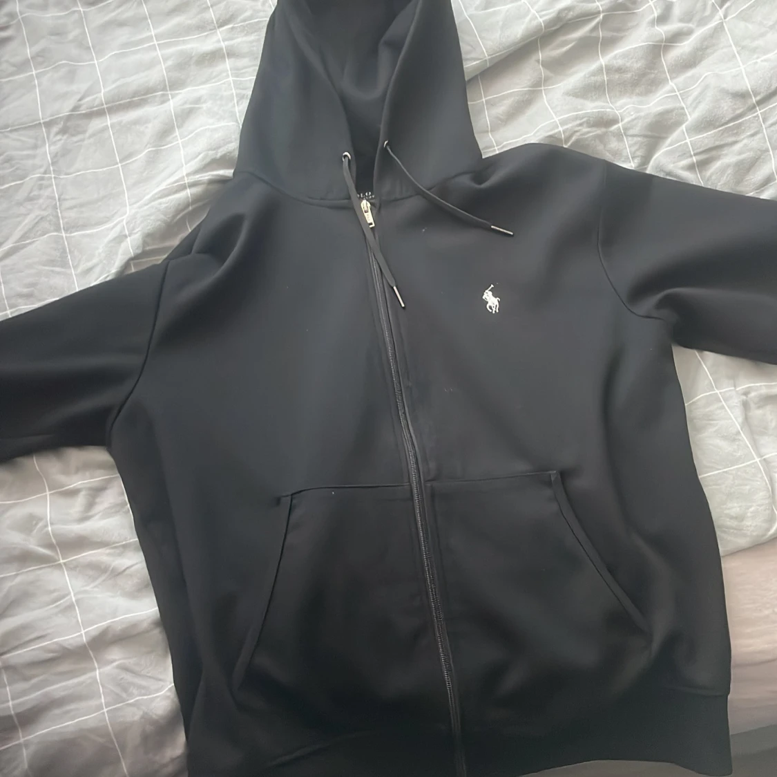 Svart hoodie med dragkedja från Ralph Lauren. Klassisk design med huva, fickor framtill och den ikoniska lilla loggan broderad på bröstet. Perfekt för en avslappnad stil.