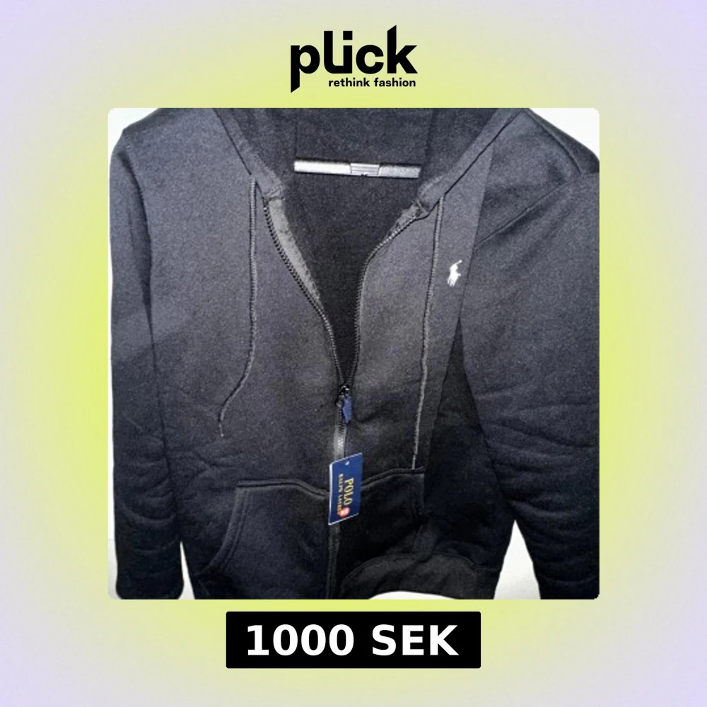 Klassisk svart hoodie från Ralph Lauren med dragkedja framtill och vit broderad logga på bröstet. Tröjan har huva med snörning HELT NY Använd 2 gånger , säljs billigt