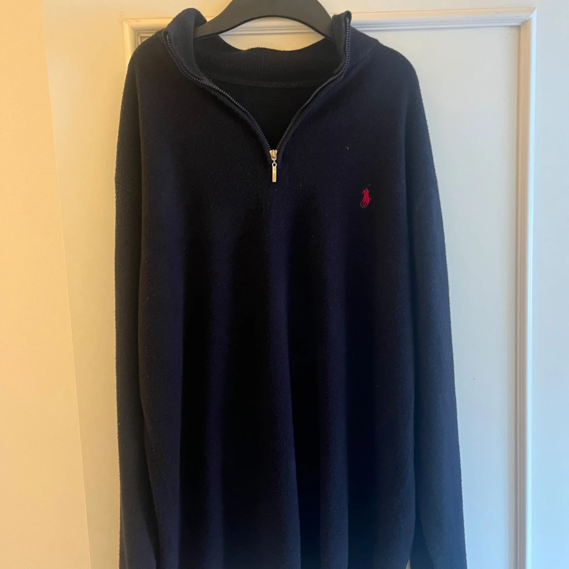 Säljer en supermjuk och lyxig svart kashmirtröja från Ralph Lauren. Perfekt för kyliga dagar när du vill vara både stilren och bekväm. Tröjan är något nopprig, något som lätt kan fixas. Bortsätt från det, super bra skick. Tröjan är Storlek M och i 100% Kashmir. Hör av er vid frågor!