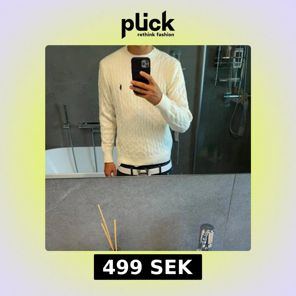Säljer en vit kabelstickad tröja från Polo Ralph Lauren med klassisk rund hals och broderad logga på bröstet. Storlek M men är lite liten passar som S/M. Material är bomull. Helt ny säljer för att den är för liten. Pris kan diskuteras vid snabb affär.
