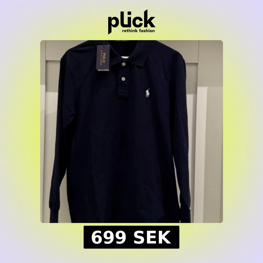 Säljer en stilren mörkblå pikétröja från Ralph Lauren med klassisk krage och knappar framtill. Tröjan har långa ärmar och det ikoniska logotypbroderiet på bröstet. Perfekt för en avslappnad men ändå elegant look. Storlek M