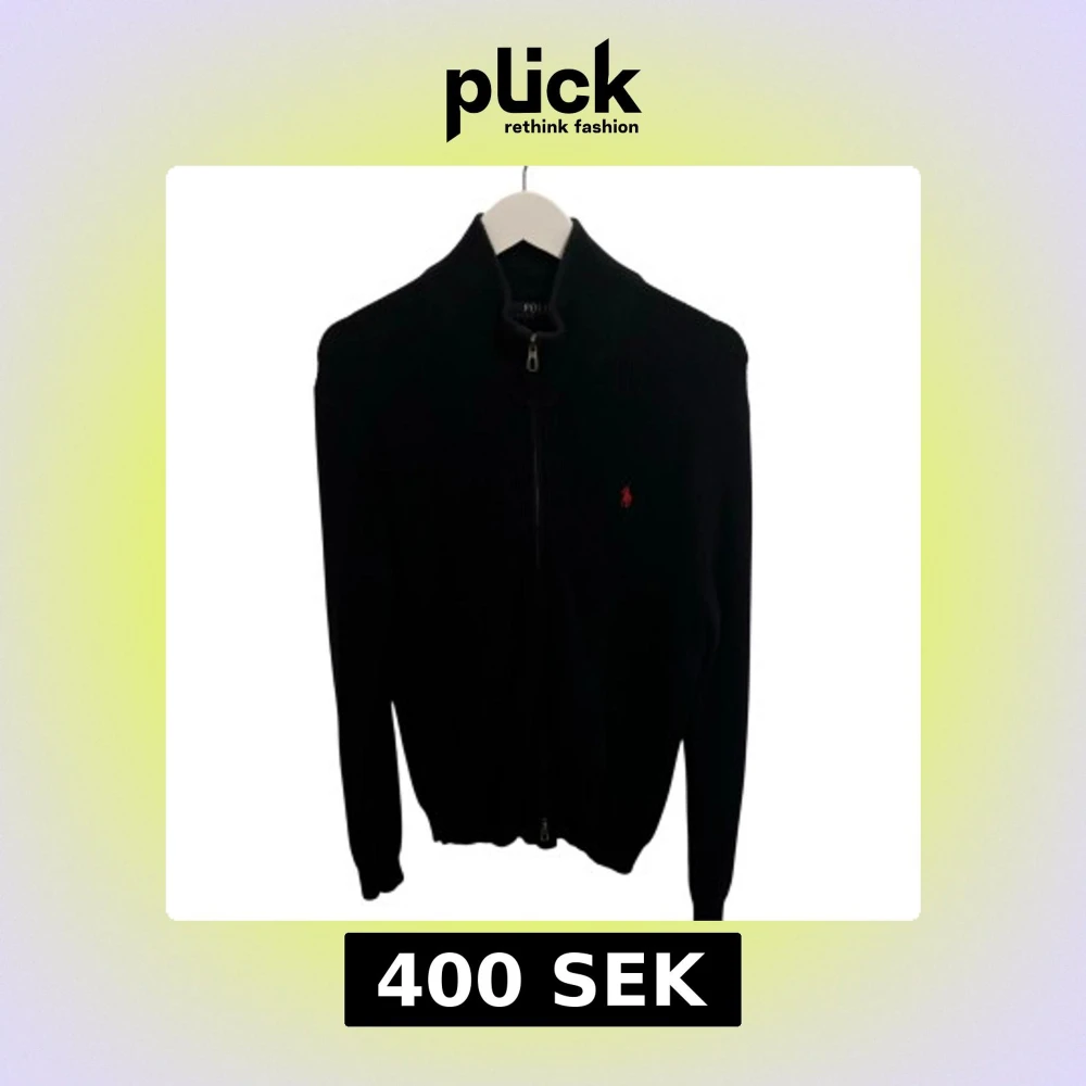 Marinblå stickad kofta från Polo Ralph Lauren med hel dragkedja framtill och klassisk röd logga på bröstet. Hög krage och ribbade muddar ger en clean och stilren look. Perfekt för lager-på-lager under kyliga dagar.