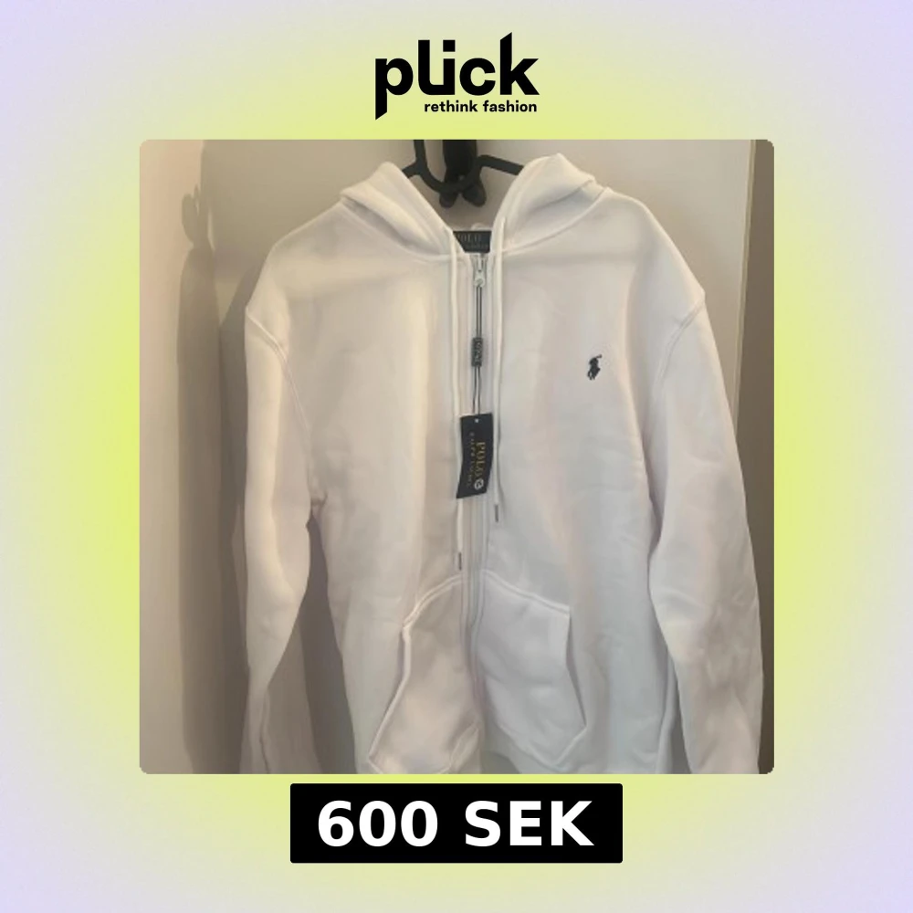 Snygg vit hoodie från Polo Ralph Lauren med dragkedja och klassisk blå logga på bröstet. Tröjan har huva, långa ärmar och två stora fickor framtill. Perfekt för en chill och stilren look.