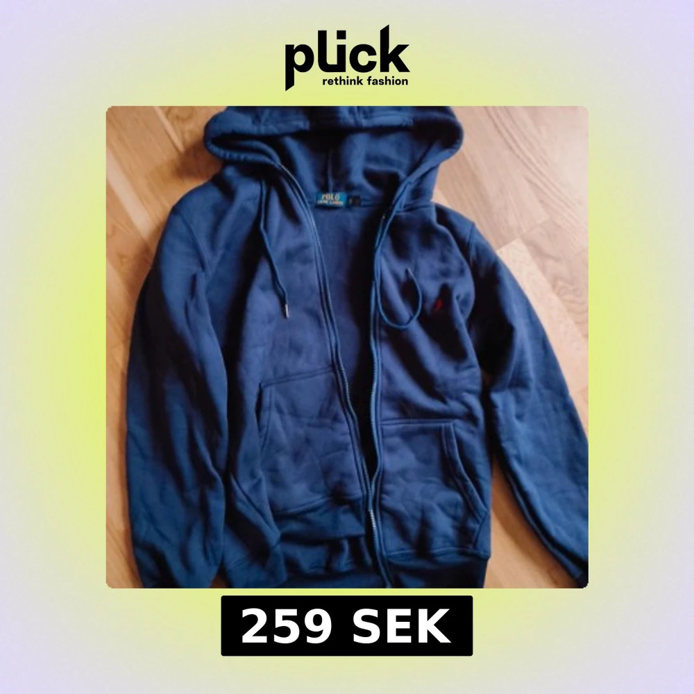 Säljer en marinblå hoodie från Polo Ralph Lauren med dragkedja och huva. Tröjan har snörning vid huvan, två fickor framtill och den klassiska röda Polo-loggan broderad på bröstet. Perfekt för chill dagar och enkel att matcha med jeans. Inte riktigt!!!
