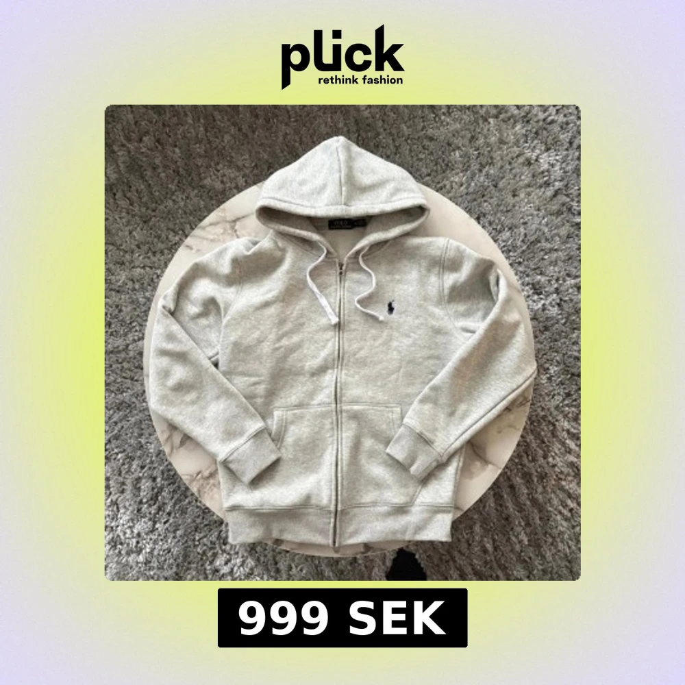 Snygg ljusgrå hoodie från Polo Ralph Lauren med dragkedja och vit snörning i huvan. Tröjan har det klassiska blå Polo-logot på bröstet, två fickor fram och ribbade muddar. Perfekt för chill dagar och enkel att matcha med jeans eller joggers. Väldigt bra och högkvalitativ material som gör koftan väldigt skön att ha på sig.