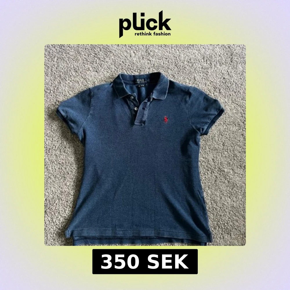 Klassisk marinblå pikétröja från Ralph Lauren med röd broderad logga på bröstet. Modellen är 'The Skinny Polo' med korta ärmar, krage och knappar framtill. Perfekt för en stilren och sportig look.