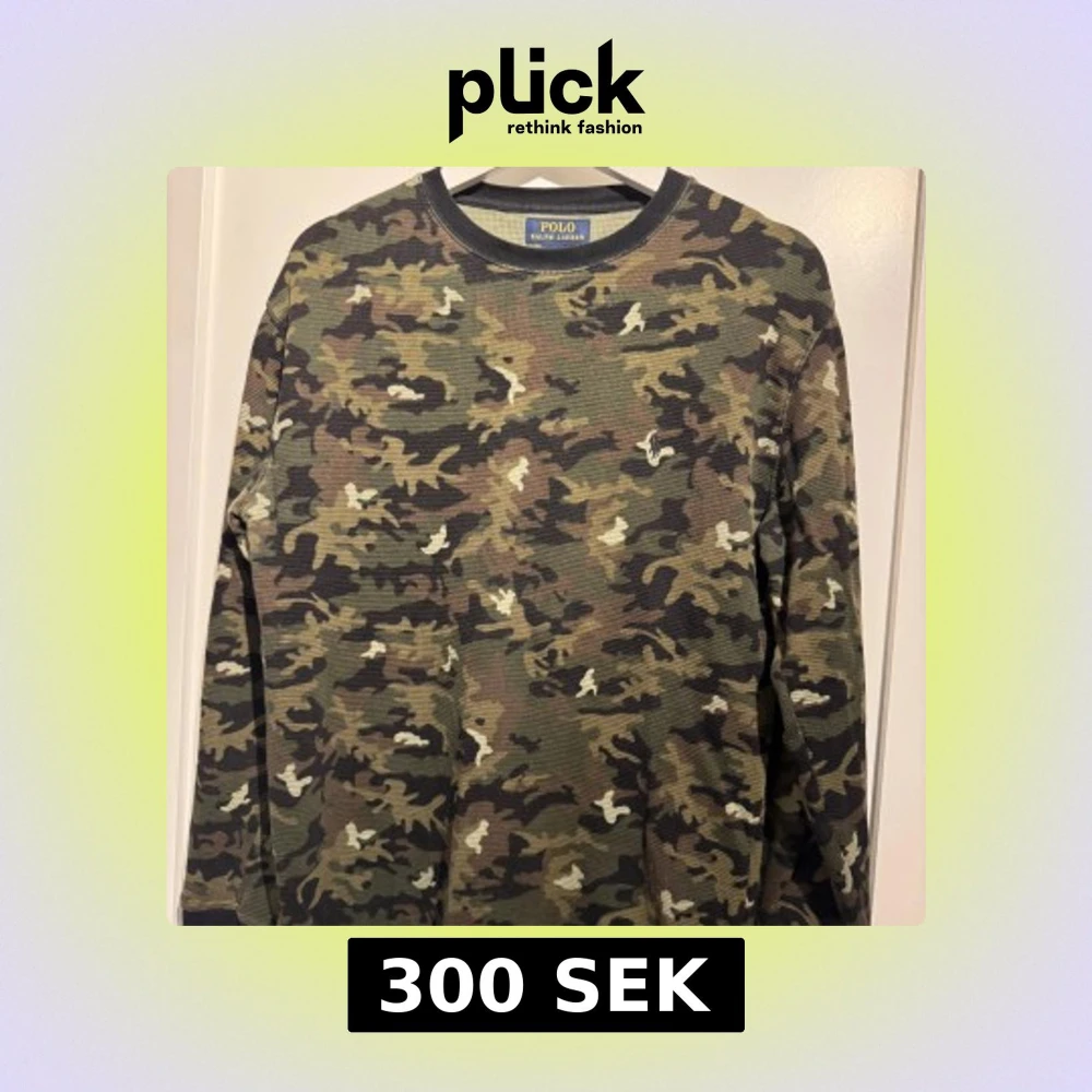 Säljer en långärmad tröja från Polo Ralph Lauren i klassiskt camouflage-mönster. Tröjan är i 100% bomull med broderad logga på bröstet. Färgerna går i grönt, brunt, svart och beige.