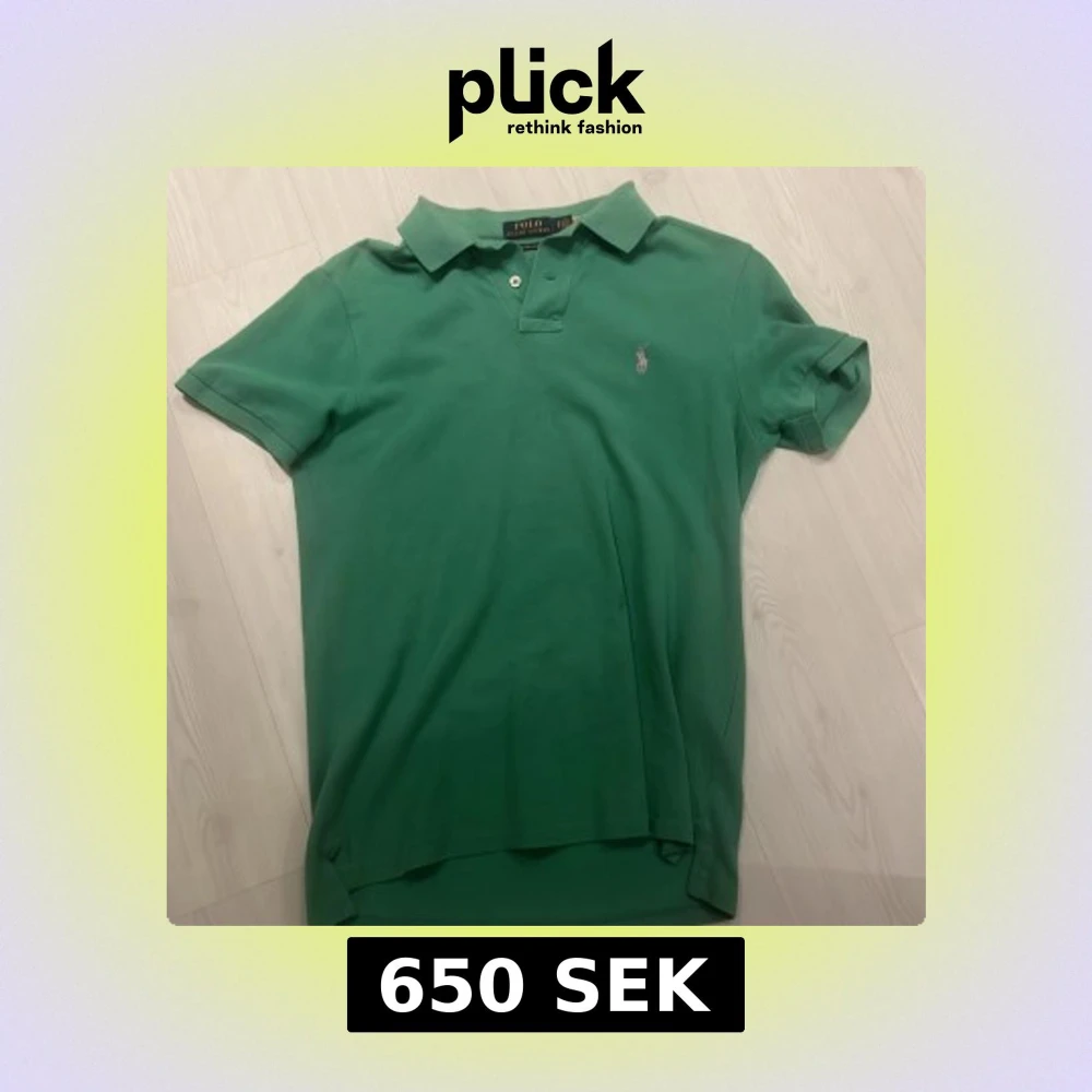 Snygg grön pikétröja från Polo Ralph Lauren med klassisk krage och korta ärmar. Tröjan har den ikoniska broderade loggan på bröstet och är i bomull. Perfekt för en chill och stilren look.Har några fläckar men går att tvätta.