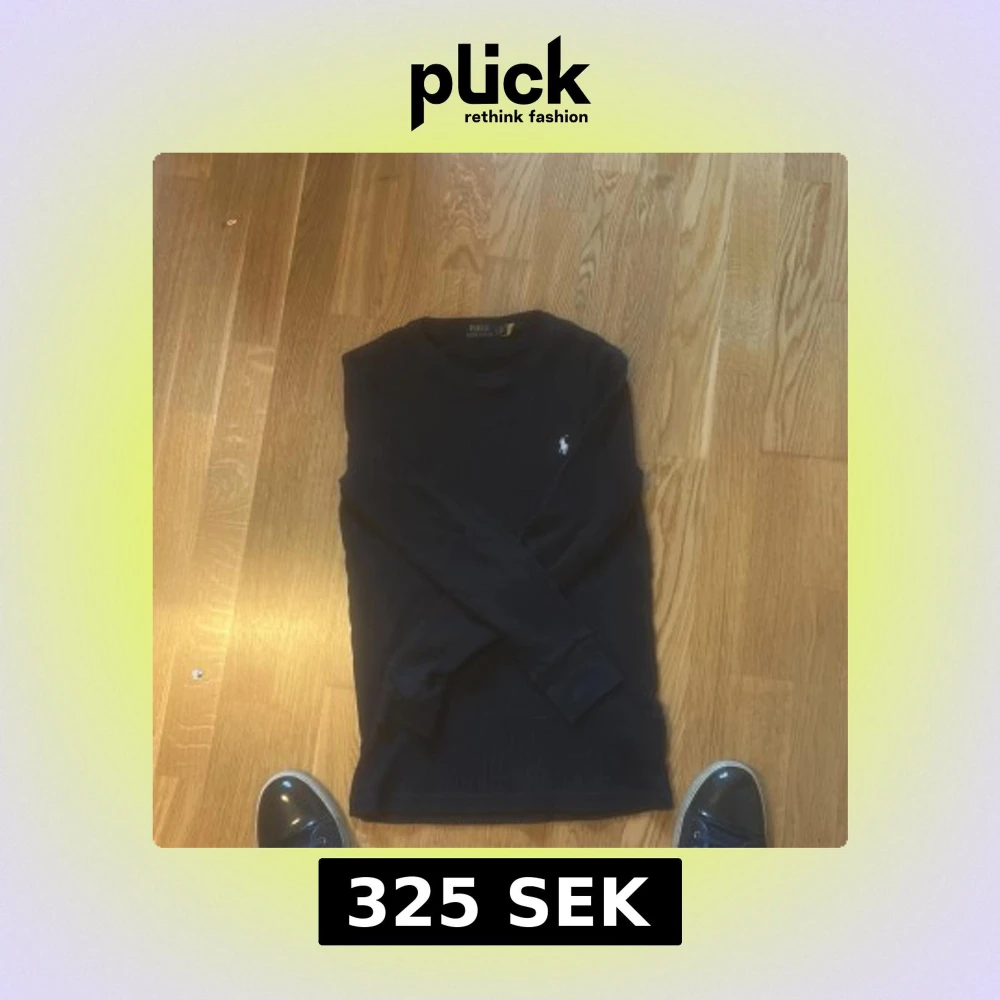Mörkblå långärmad tröja från Polo Ralph Lauren med klassisk broderad logga på bröstet. Tröjan är ribbstickad och har en rund halsringning. Perfekt för dig som gillar stilren och tidlös design. Den är använd ett få antal gånger.