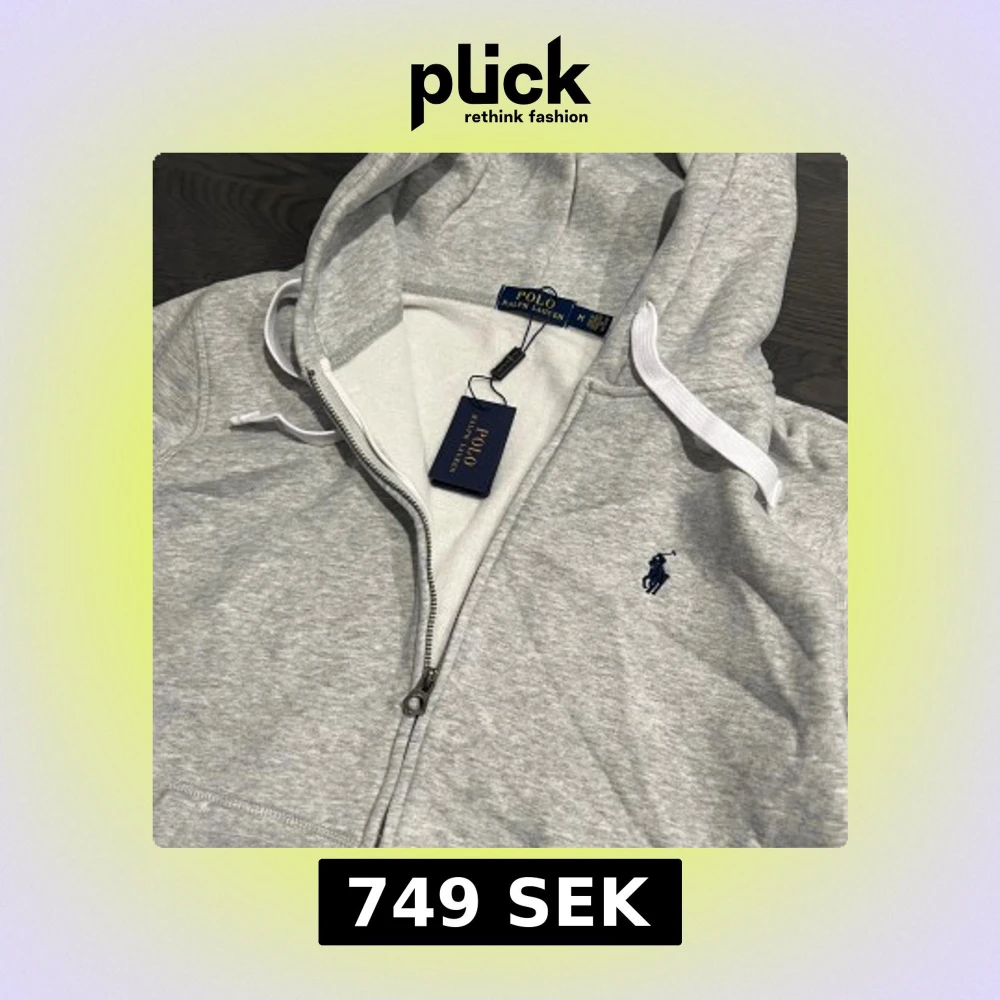Snygg ljusgrå hoodie från Polo Ralph Lauren med dragkedja och klassisk broderad logga på bröstet. Tröjan har huva med vita snören, känguruficka och ribbade muddar. Perfekt för en chill och stilren look.
