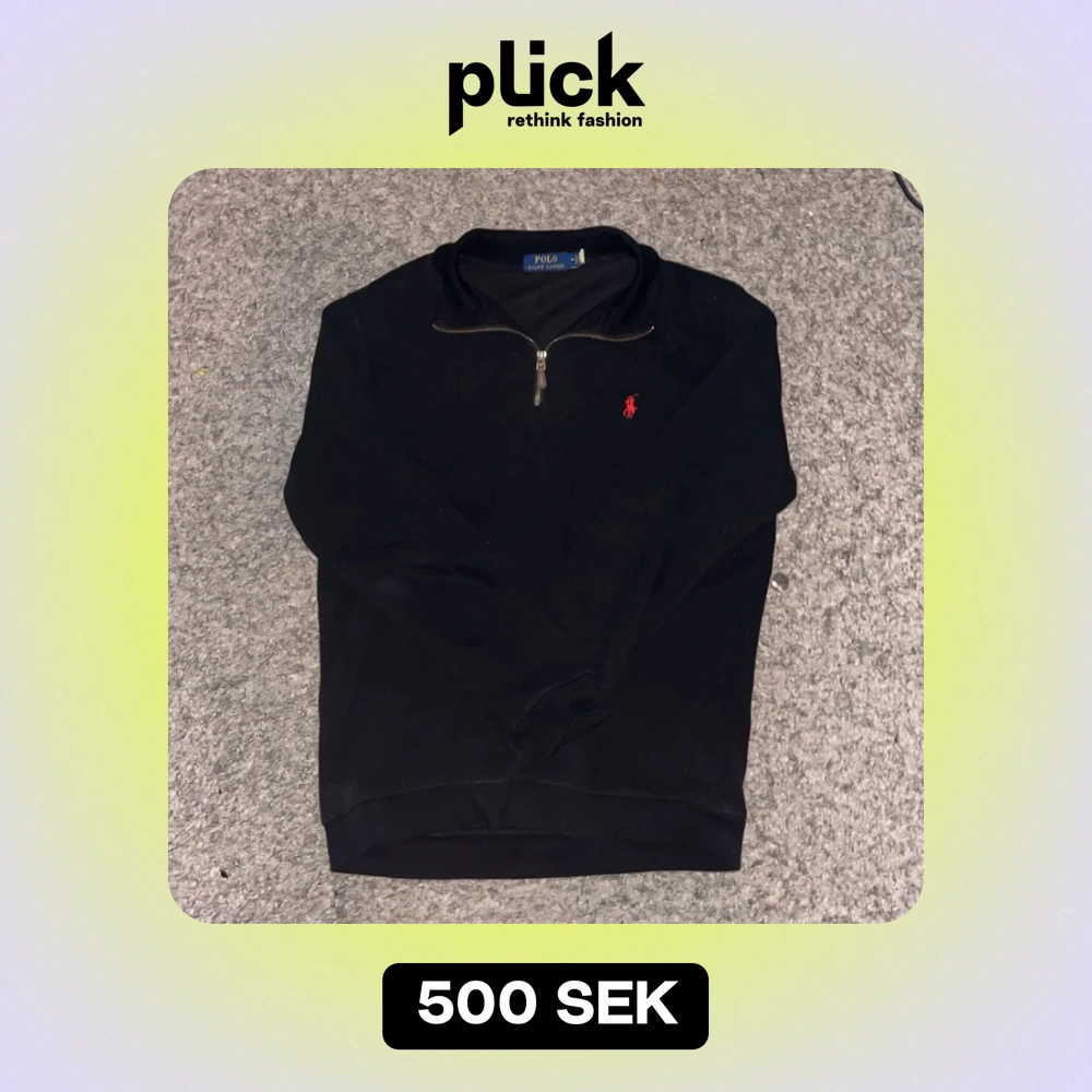 Säljer en stilren svart tröja från Polo Ralph Lauren med en halv dragkedja och det klassiska röda logotypbroderiet på bröstet. Perfekt för både vardag och lite finare tillfällen. Tröjan har långa ärmar och är i mycket bra skick. Passar perfekt till höst och vinter!