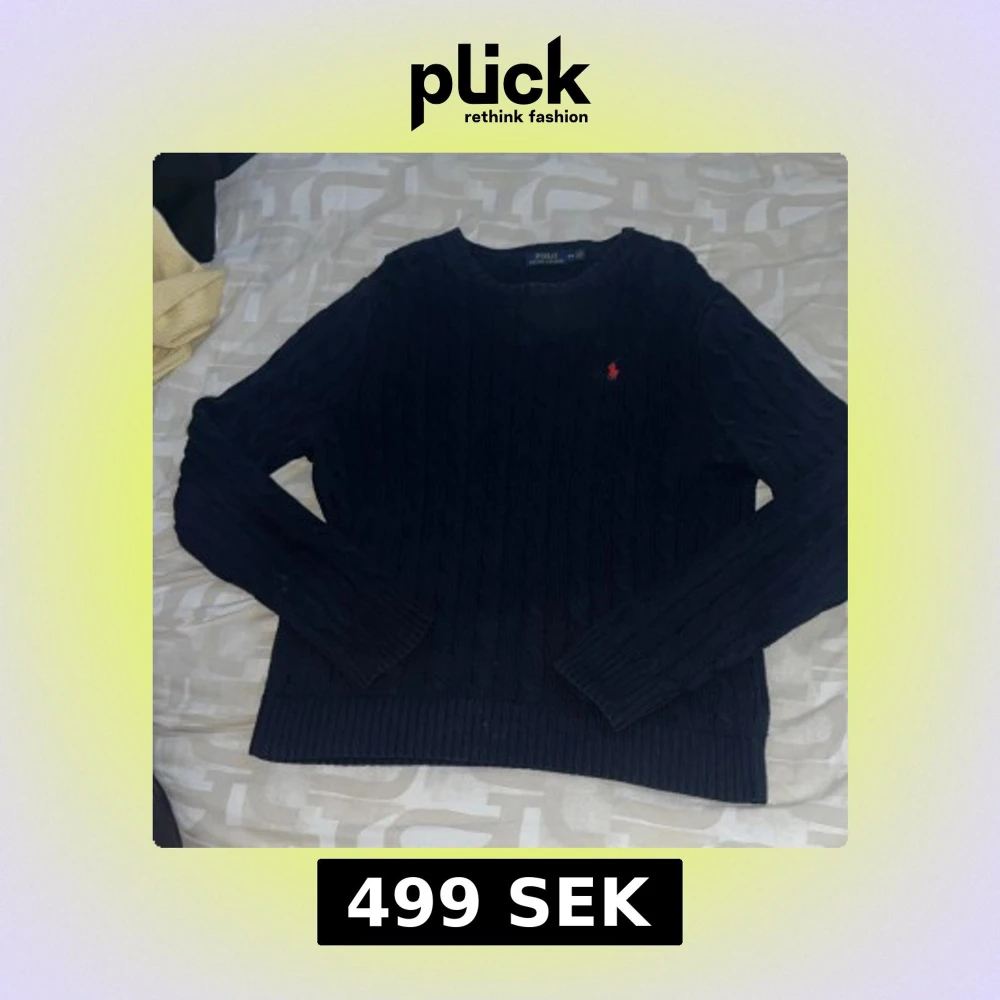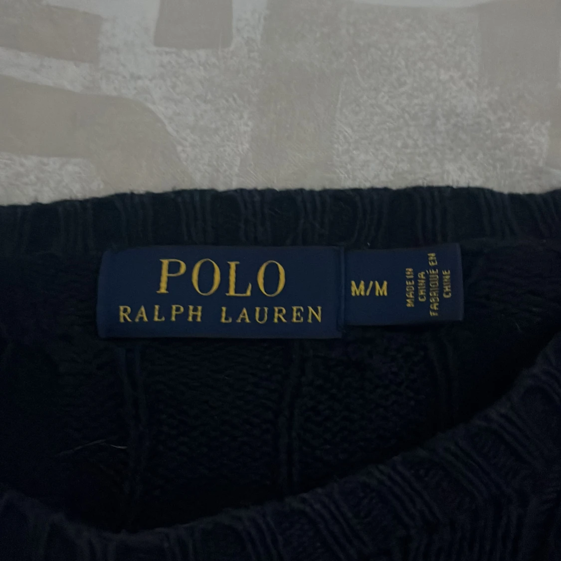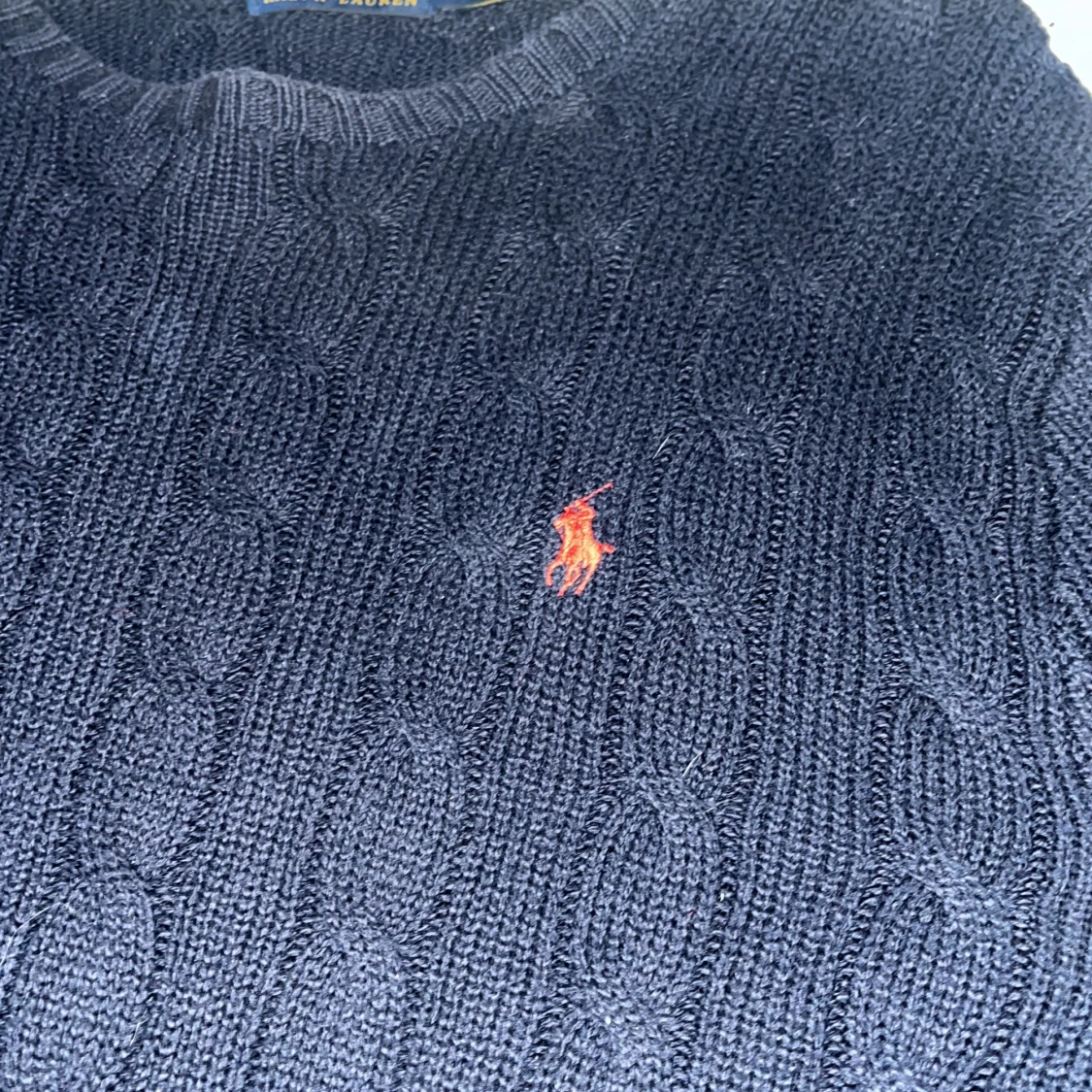 Mörkblå kabelstickad tröja från Ralph Lauren.