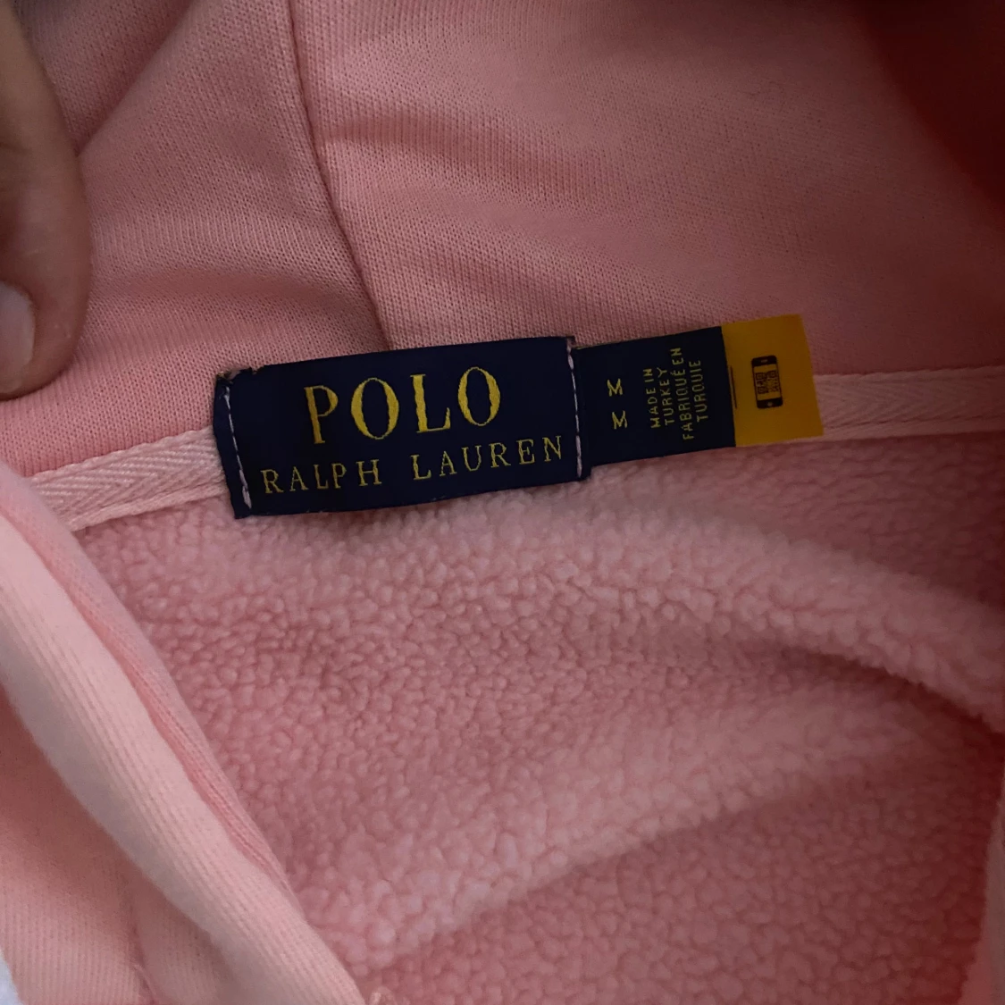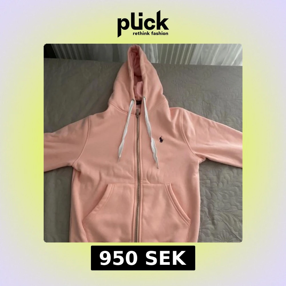 Mysig ljusrosa hoodie från Polo Ralph Lauren med dragkedja, vit snörning i huvan och klassisk logga broderad på bröstet. Tröjan har känguruficka och är fodrad med mjuk fleece på insidan. Perfekt för chill dagar.