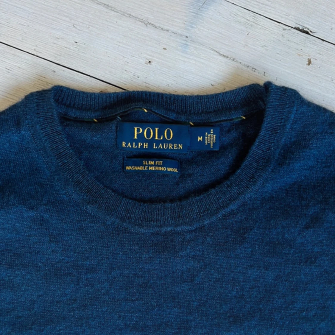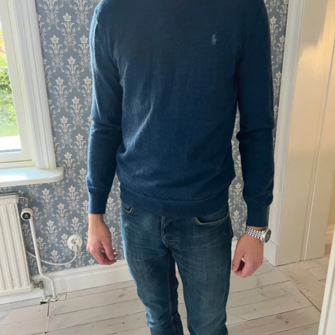 Säljer denna marinblåa Ralph Lauren tröja i merinoull. Storlek M och riktigt bra skick. Tveka inte att kontakta mig för frågor! 🙏