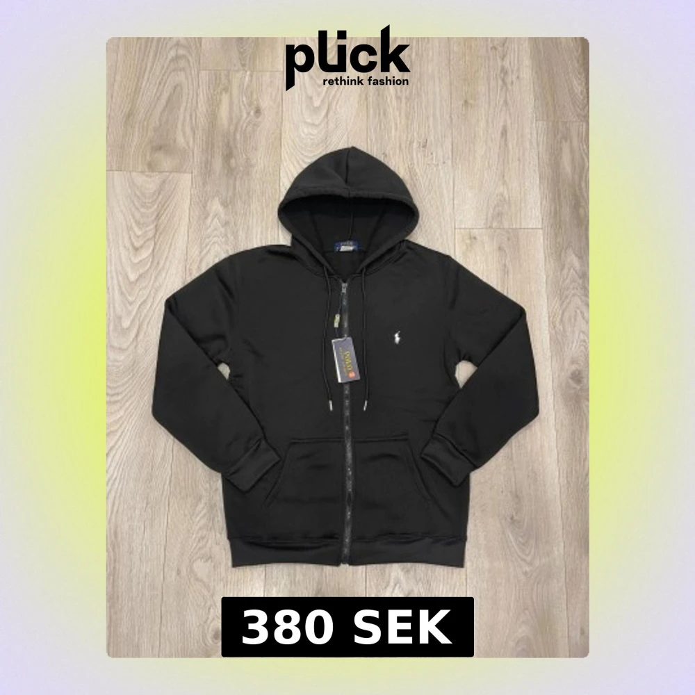 Svart hoodie från Polo Ralph Lauren med klassisk vit logga på bröstet. Tröjan har huva med snörning, dragkedja framtill och två fickor. Tillverkad i mjuk bomullsmix, perfekt för chill dagar. Långärmad och normal passform.