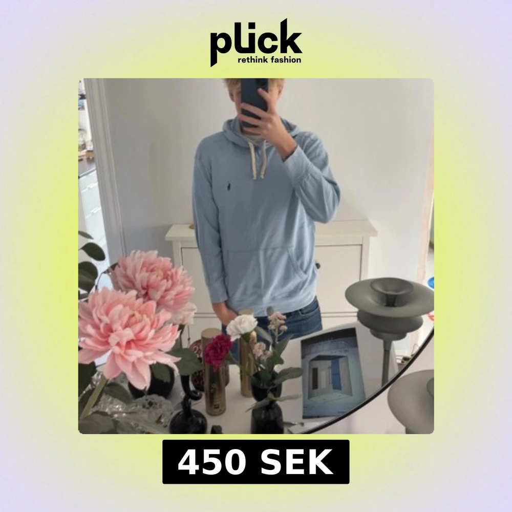 Säljer en ljusblå hoodie från Polo Ralph Lauren med klassisk broderad logga på bröstet. Tröjan har huva med vita snören, känguruficka och långa ärmar. Perfekt för en chill och stilren look.