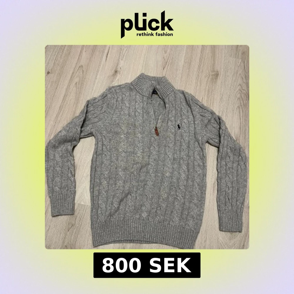 Snygg grå stickad tröja från Polo Ralph Lauren med klassiskt kabelmönster och halv dragkedja vid kragen. Tröjan har långärmade ribbade muddar och en broderad marinblå logga på bröstet. Perfekt för dig som gillar stilren och tidlös design.