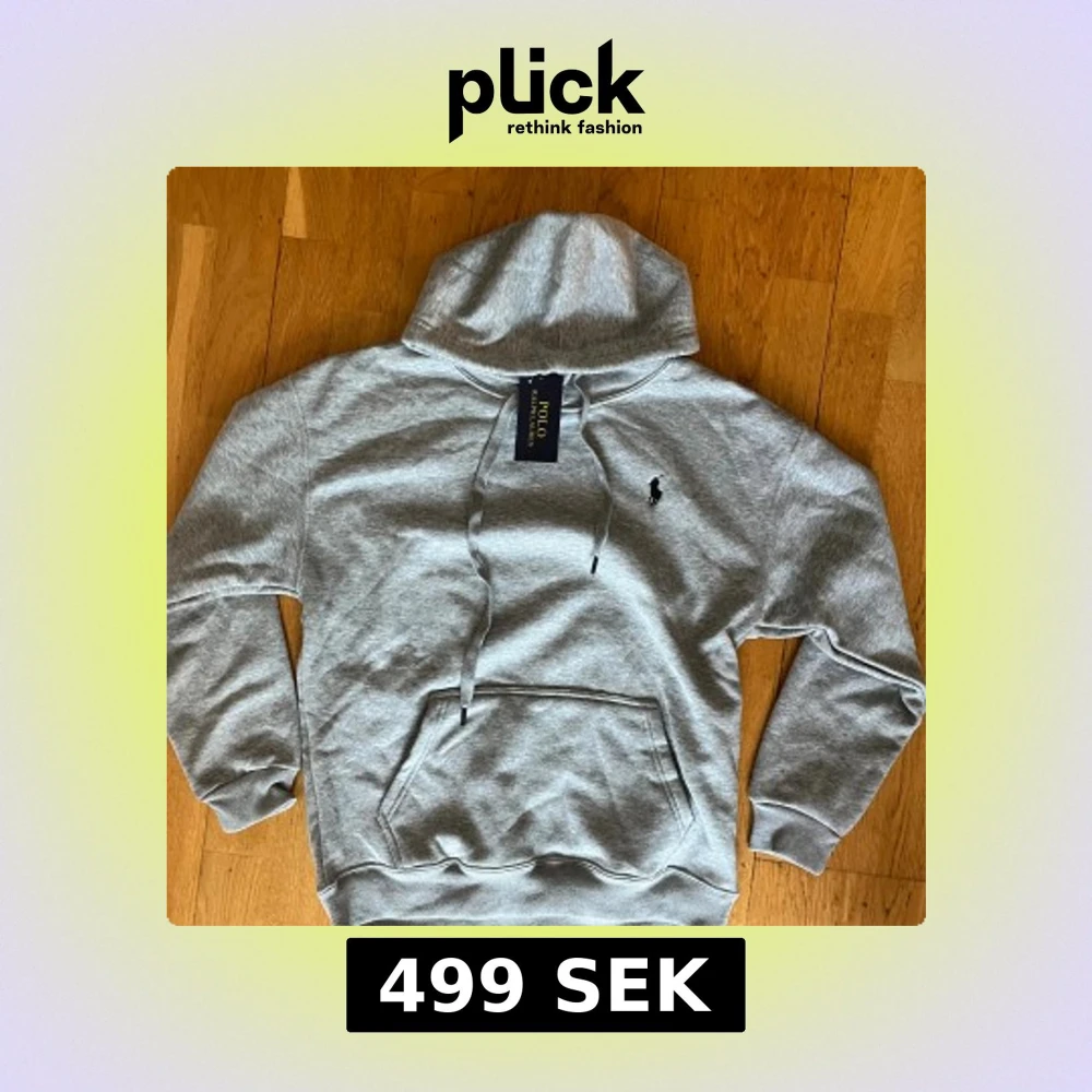 Snygg grå hoodie från Polo Ralph Lauren med klassisk huva. Tröjan har en broderad logga på bröstet och en stor magficka framtill. Perfekt för en chill och stilren look. Mjuk och skön bomullsblandning med ribbade muddar vid ärmslut och nederkant. Storlek L men sitter som M eller stor S. Säljer pga för liten.