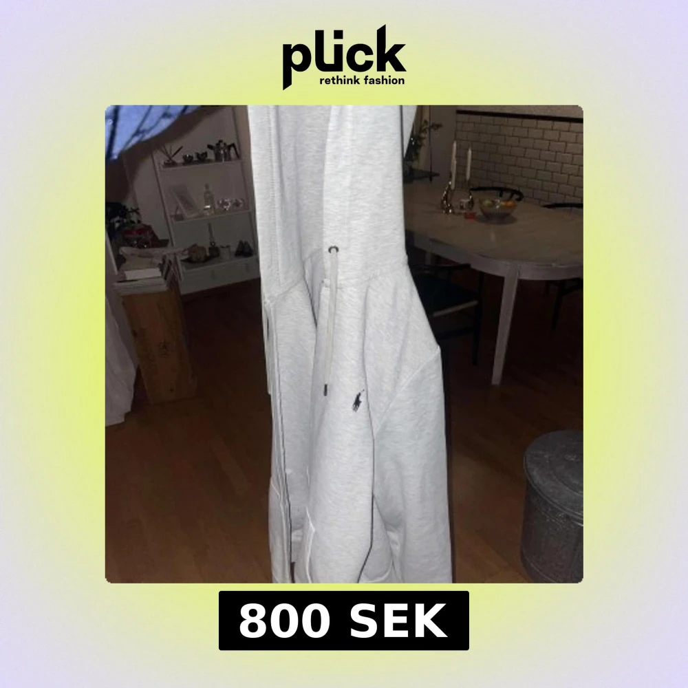 Säljer en stilren grå hoodie från Ralph Lauren med dragkedja och det klassiska logotypbroderiet på bröstet. Perfekt för en avslappnad look.