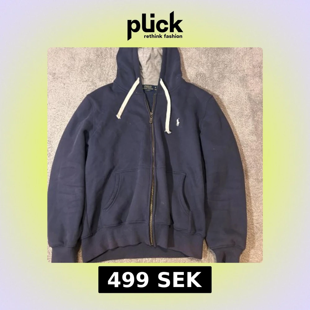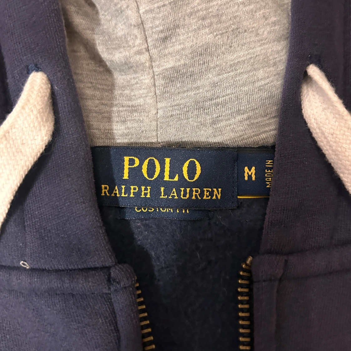 Marinblå hoodie från Polo Ralph Lauren med vit dragsko och dragkedja framtill. Klassisk logga broderad på bröstet och två stora fickor. Mjuk insida och huva med grått foder. Perfekt för chill dagar eller när du vill ha en clean streetstyle.