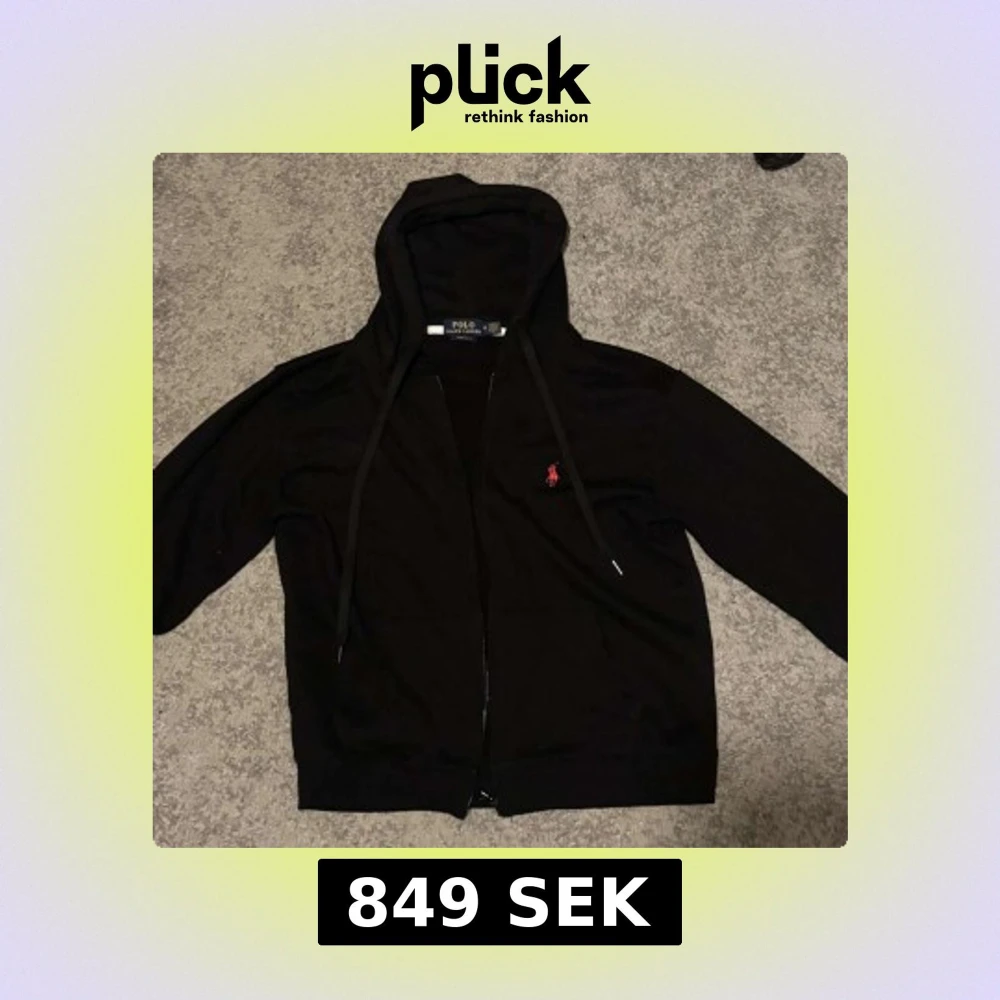 Svart hoodie från Polo Ralph Lauren i custom fit med dragkedja. Väldigt najs zip up som är i väldigt bra skick. Pris kan diskuteras vid snabb affär.