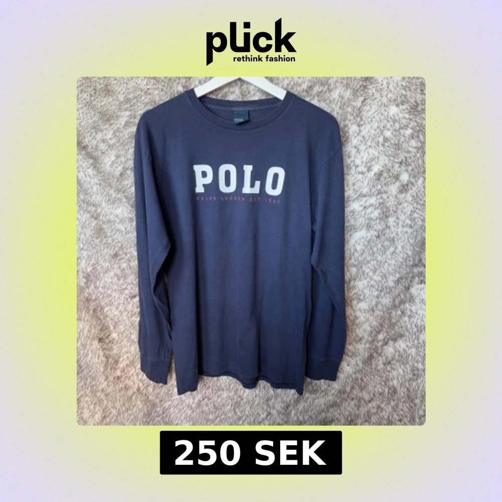 Mörkblå långärmad tröja från Polo Ralph Lauren med stor vit POLO-logga framtill och röd text under. Tyget är lite urtvättat men annars fin