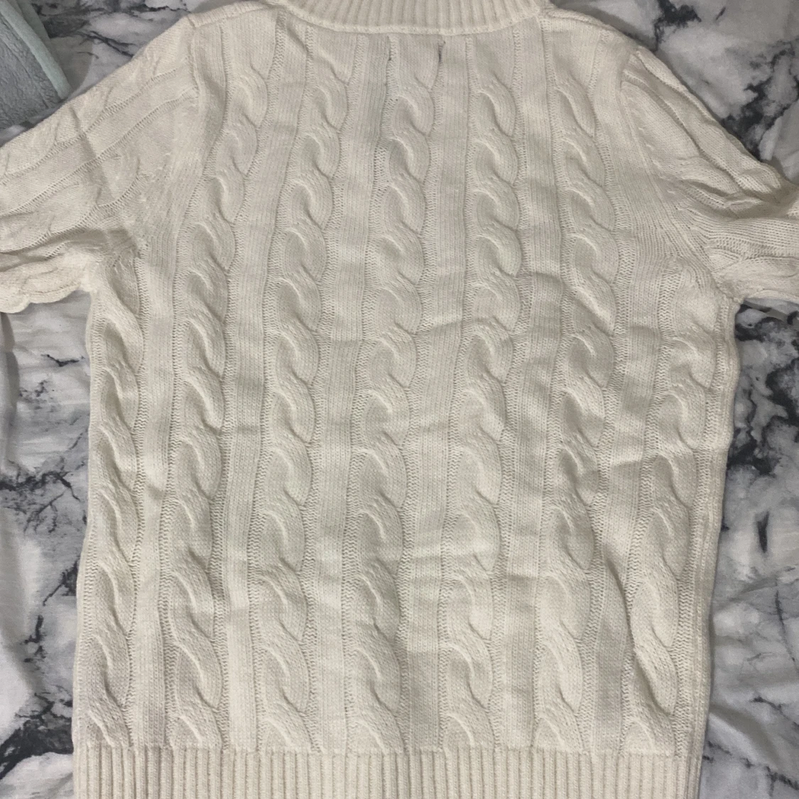 Säljer en superfin vit stickad tröja från Ralph Lauren. Den har en dragkedja framtill och det klassiska logotypbroderiet på bröstet. Perfekt för kyliga dagar med sin mysiga och stilrena design. Passar både till vardags och lite finare tillfällen.