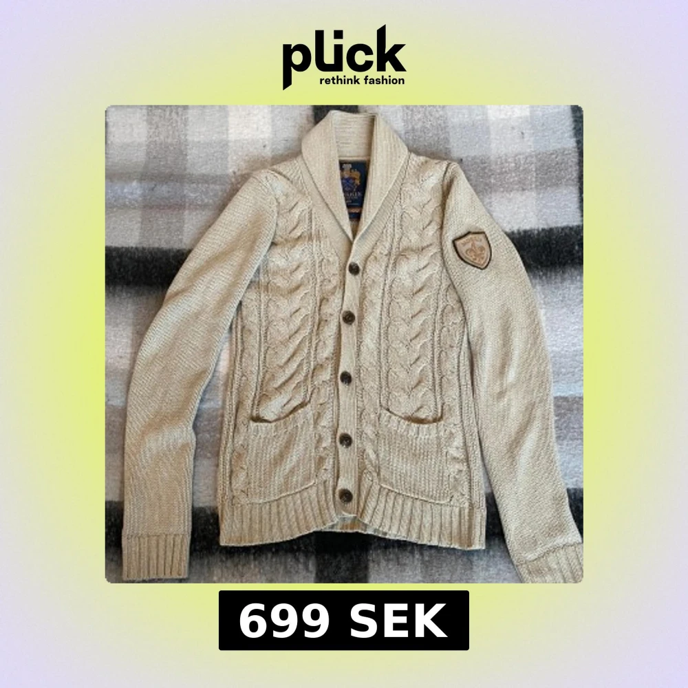 Säljer en snygg beige stickad kofta från Morris. Koftan är använd ett fåtal gånger. Den är i strl S. Skriv vid någon fundering👑