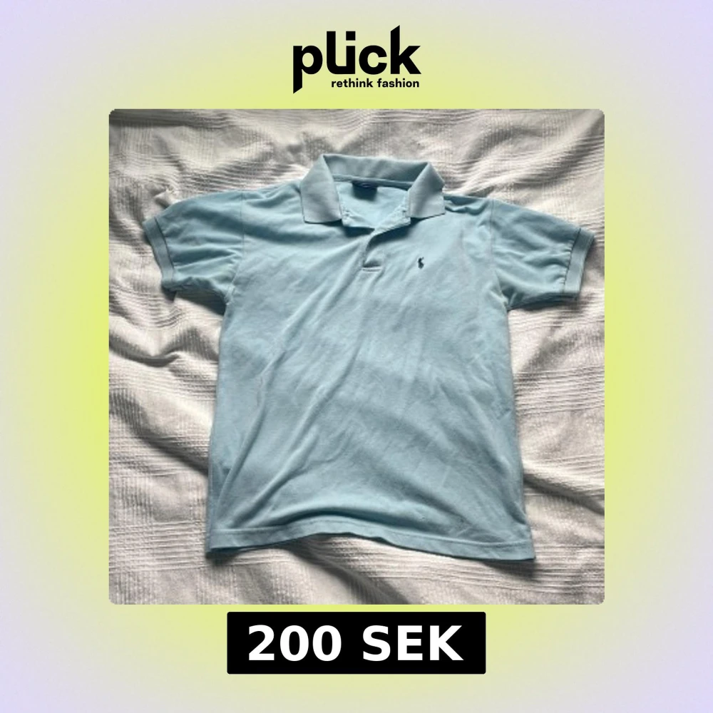 Snygg ljusblå pikétröja från Ralph Lauren med klassisk krage och två knappar framtill. En tröja perfekt till sommaren. Storlek M.