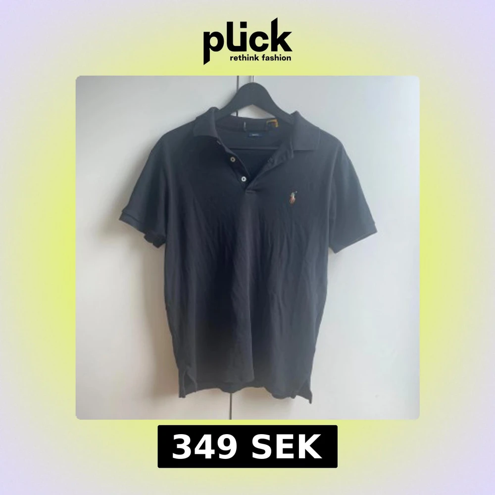 Klassisk svart pikétröja från Ralph Lauren i slim fit. Tröjan har korta ärmar, krage och knäppning med tre knappar framtill. Ikoniska broderade polospelaren på bröstet. Tillverkad i 100% bomull för en skön och luftig känsla. Fint skick utöver lappen som är borta. Nypris 1800 kr.