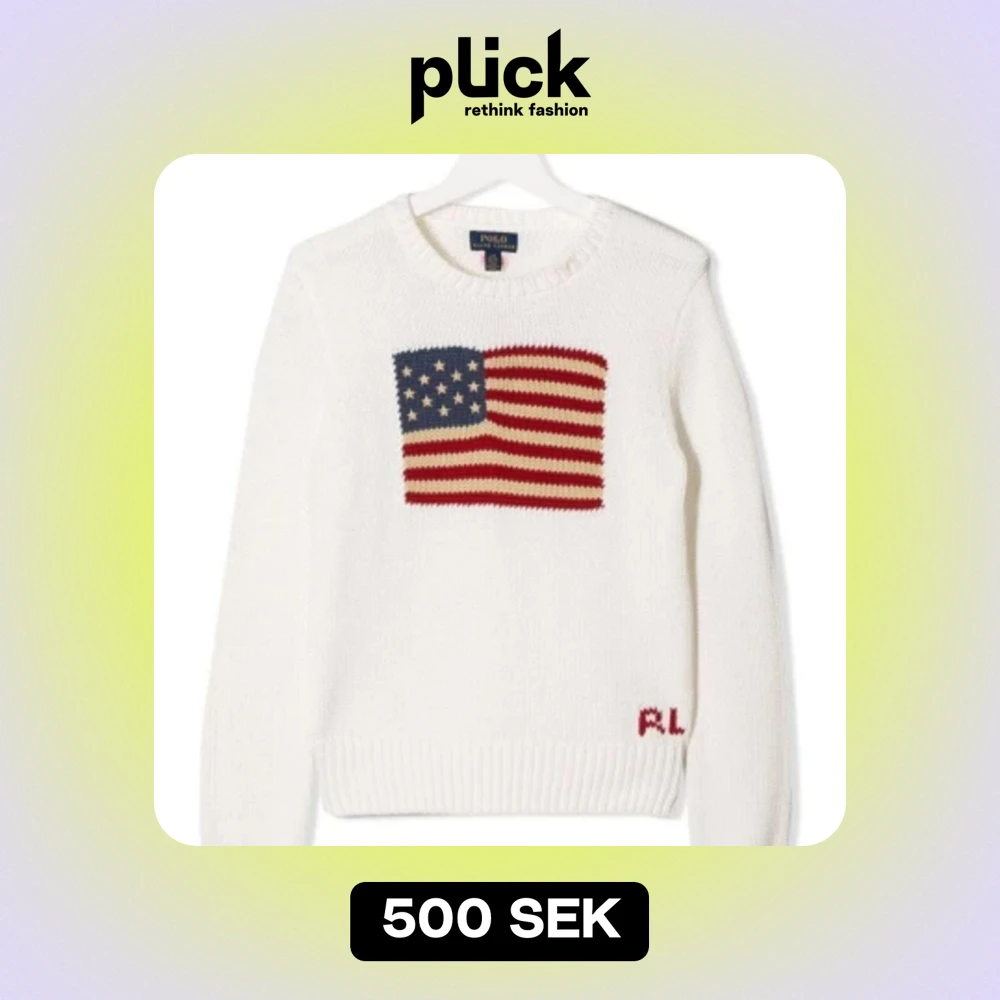Säljer min super fina Ralph Lauren tröja med en flagga på. Den är i barn storlek fast gassar folk med XS-S i överdelar. Inte jätte använd och har inga skador❤️
