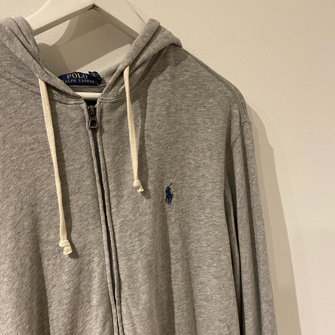 En grå Ralph lauren zip tröja med lite vintage stil, aldrig någonsin använd. Nypris runt 1000kr från Care of carl.