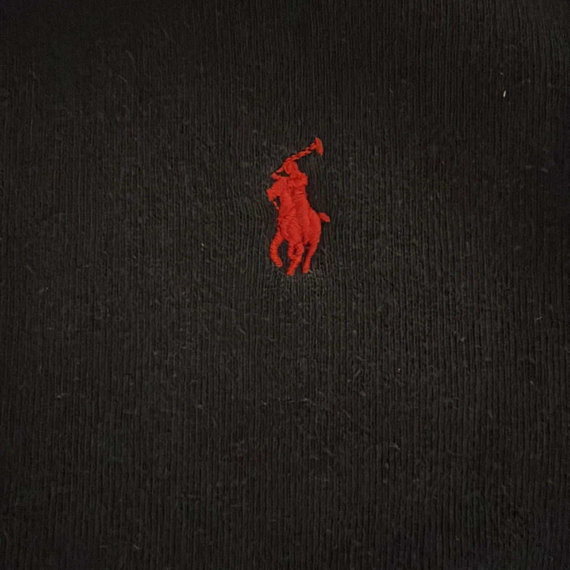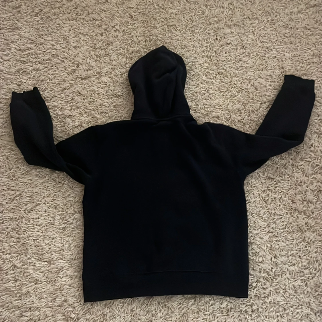 En mörk blå Ralph lauren hoddie i storlek L. Den är i mycket bra skick och det finns inga tecken på användning. Priset kan diskuteras. Den ser svart ut Pga ljuset men den är Mörk blå. 14-16 år