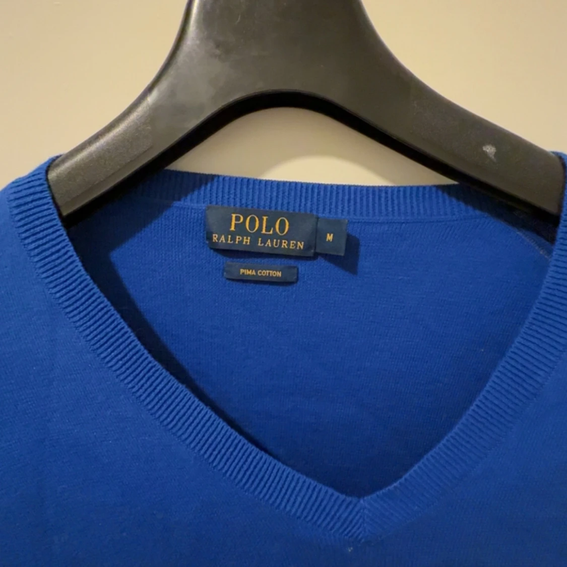 Säljer en Ralph Lauren V-ringad sweatshirt i blått, med röd broderad logga. Tillverkad i exklusiv Pima cotton - extra mjuk och följsam med lyxig känsla. En stilren och mångsidig tröja som passar både till vardags och lite mer uppklätt. Storlek: M (normal passform) Skick: Väldigt fint – inga fläckar, hål eller slitage Färg: Blå med röd broderad hästlogga Material: Pima cotton – mjukt, hållbart och högkvalitativt