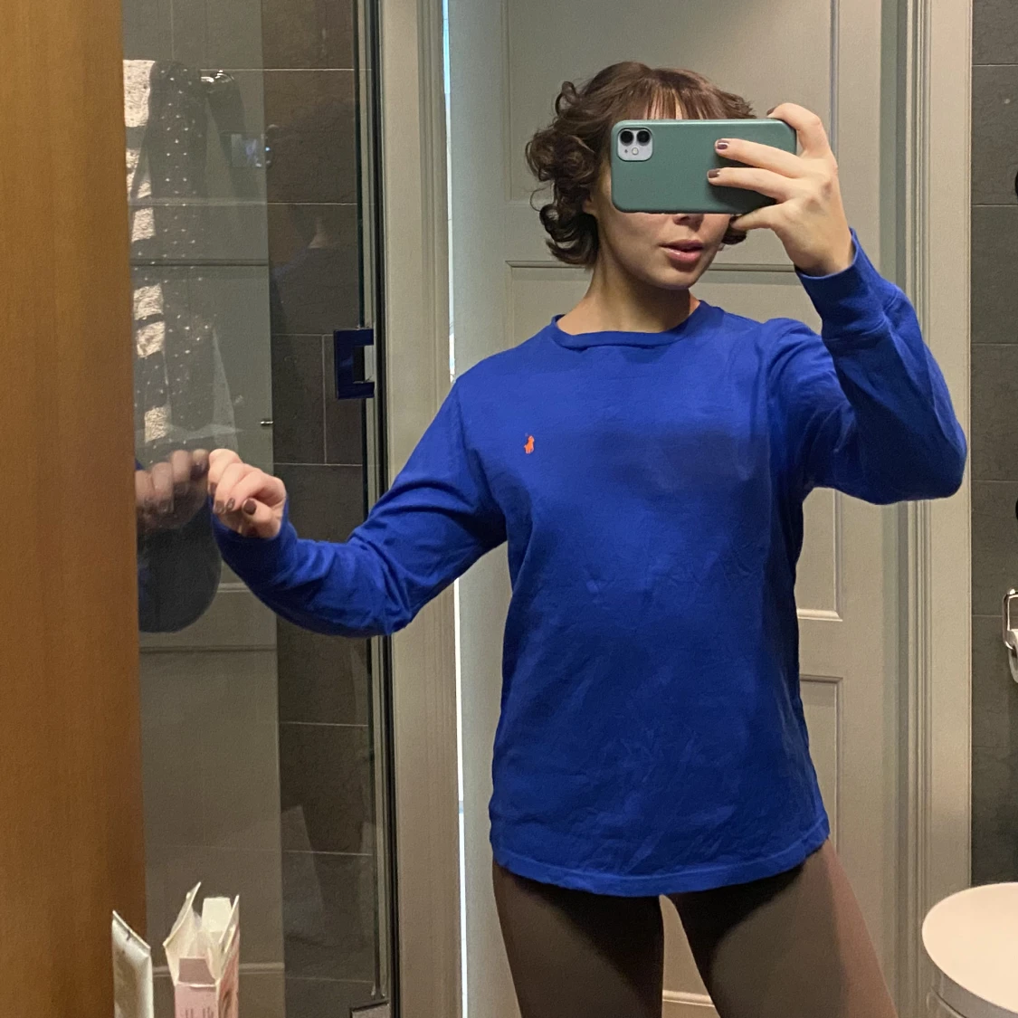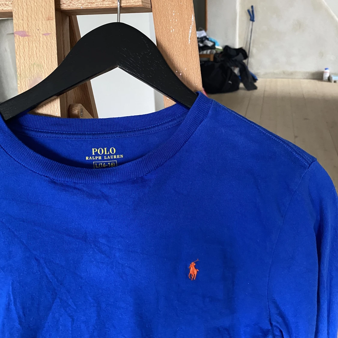 Blå Ralph Lauren tröja. Strl L (14-16) - är vad som står på lappen, sitter lite oversized på mig som är en S.