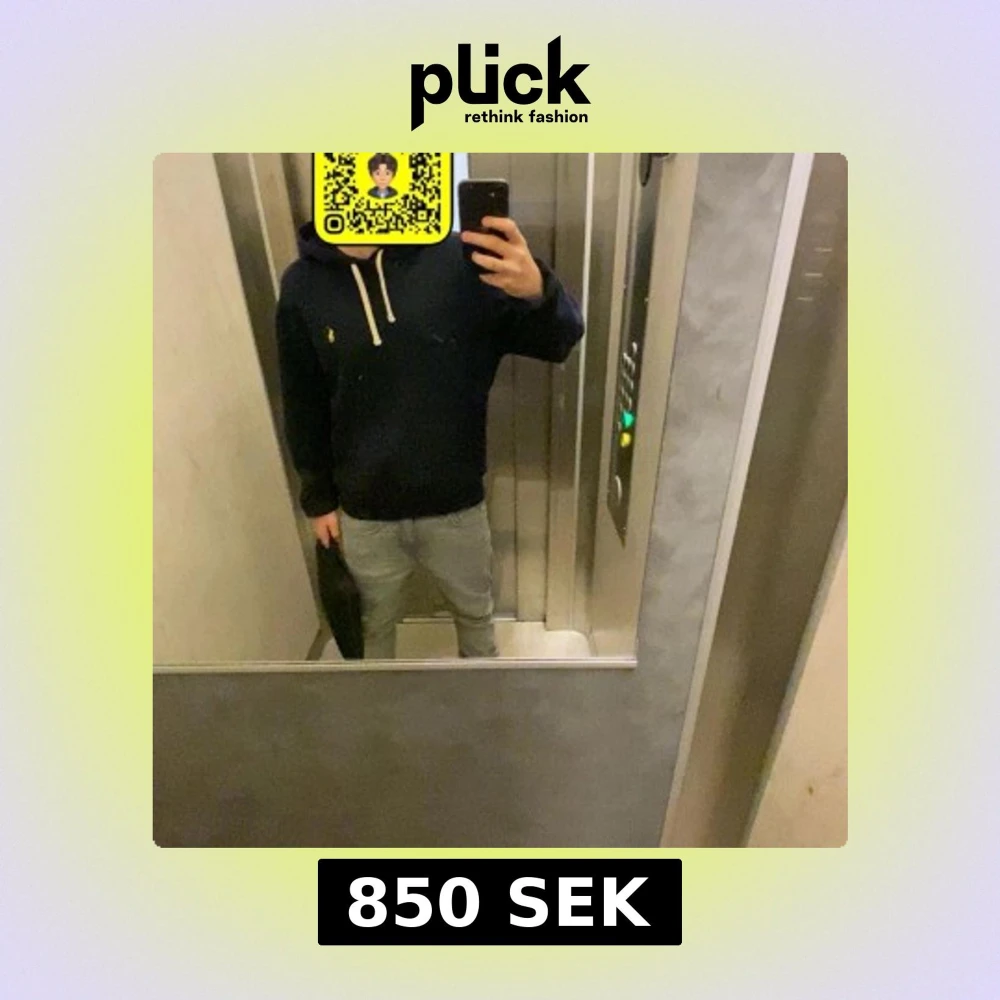 Säljer en snygg mörkblå hoodie från Ralph Lauren med det klassiska gula logotypen på bröstet. Tröjan har en justerbar huva med vita snören och långa ärmar. Perfekt för en avslappnad stil.