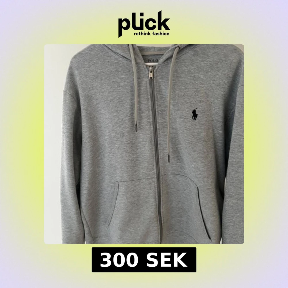 Grå hoodie från Polo Ralph Lauren med dragkedja, snörning i huvan och klassisk svart logga på bröstet. Tröjan har två fickor framtill och är tillverkad i mjuk bomullsmix. Perfekt för chill dagar och enkel att matcha med jeans eller joggers.