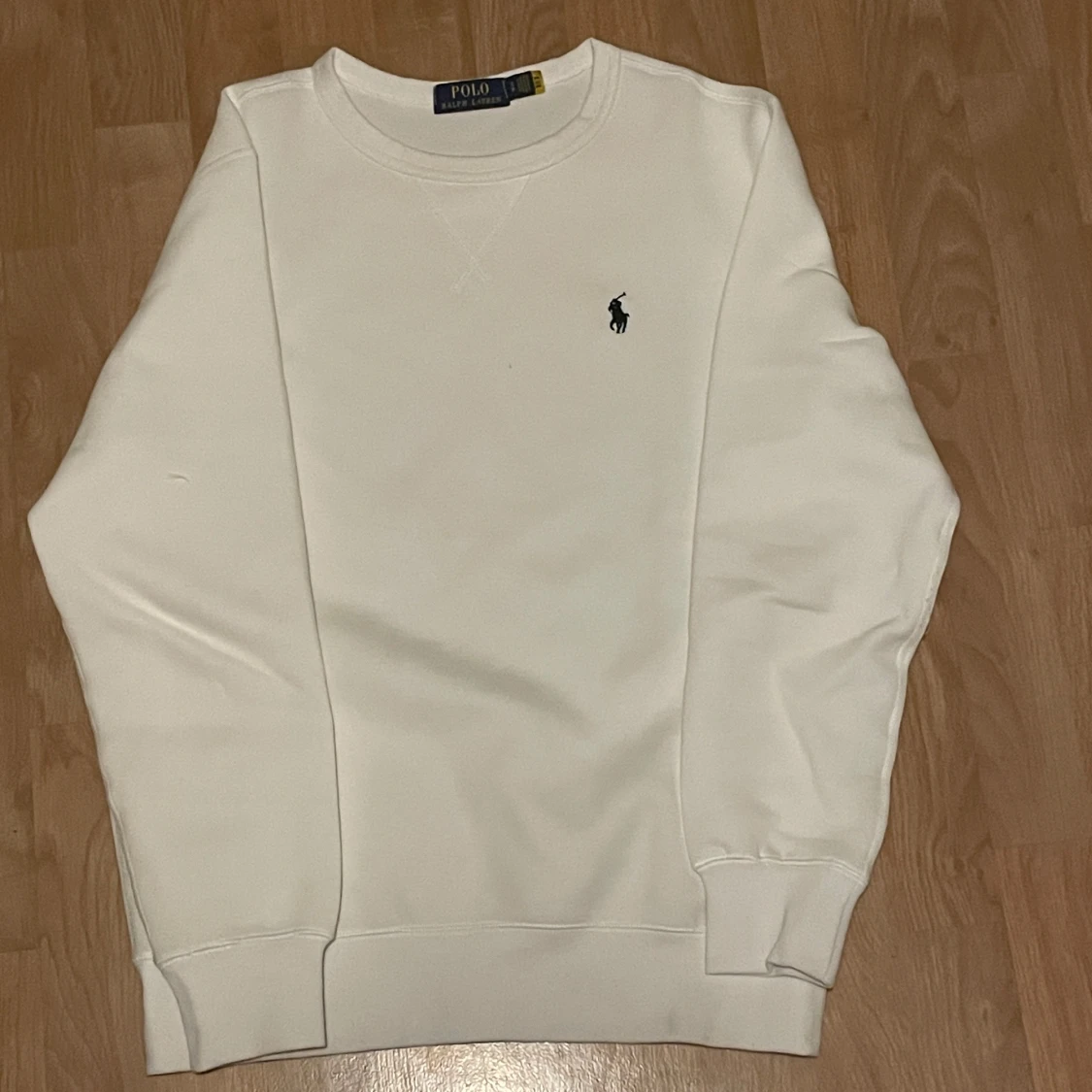 Säljer en Ralph Lauren tröja med det klassiska logotypbroderiet på bröstet. Tröjan har långa ärmar och ribbade muddar vid ärmslut och nederkant. Perfekt för en avslappnad och snygg look.