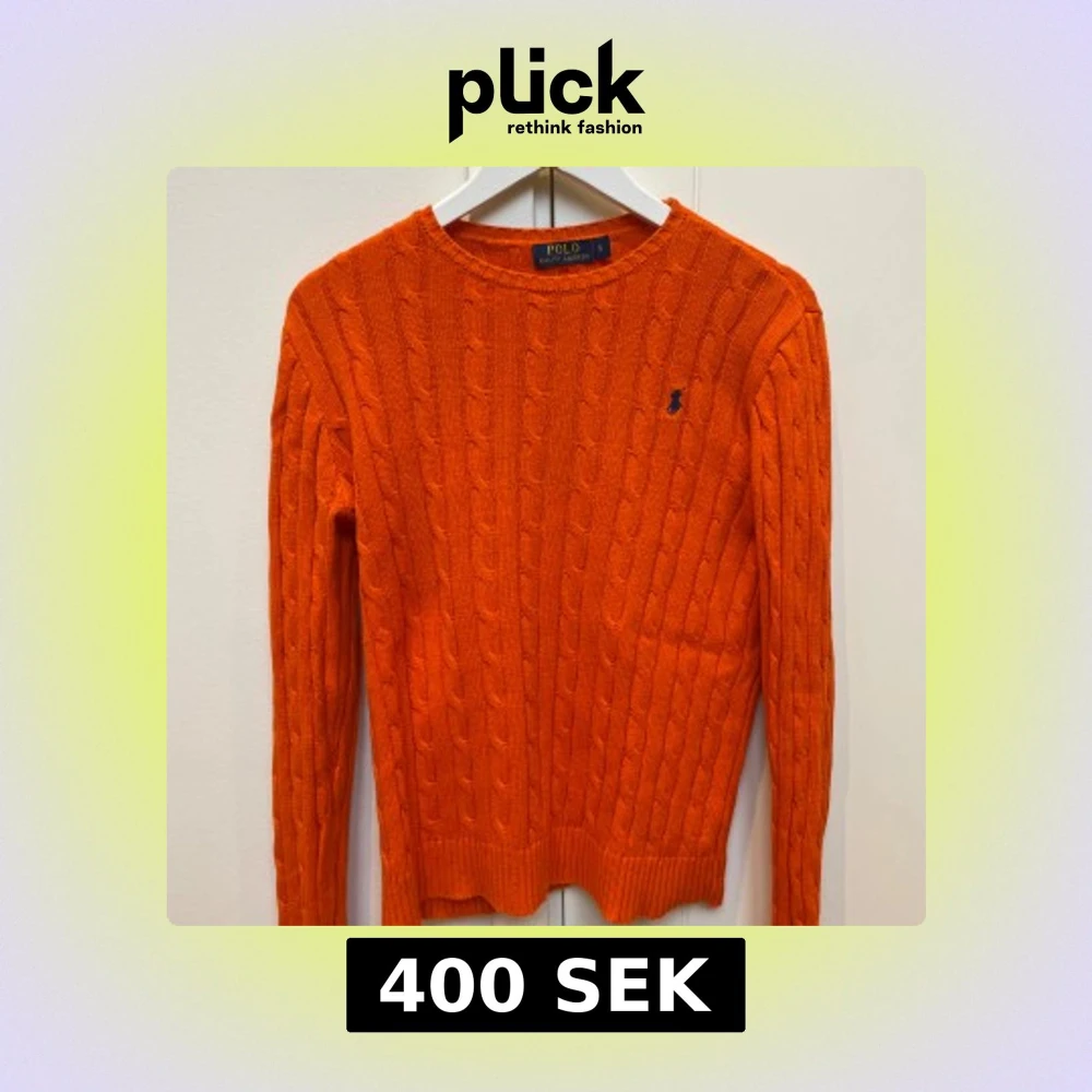 Snygg orange kabelstickad tröja från Polo Ralph Lauren i storlek S. Tröjan har rund hals, lång ärm och klassisk blå logga broderad på bröstet. Ribbstickade muddar vid ärmslut och nederkant. Perfekt för dig som gillar färg och stil.