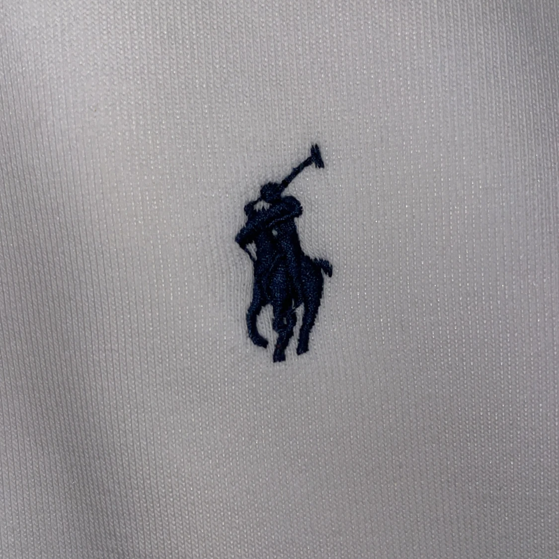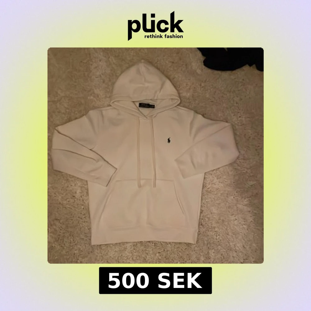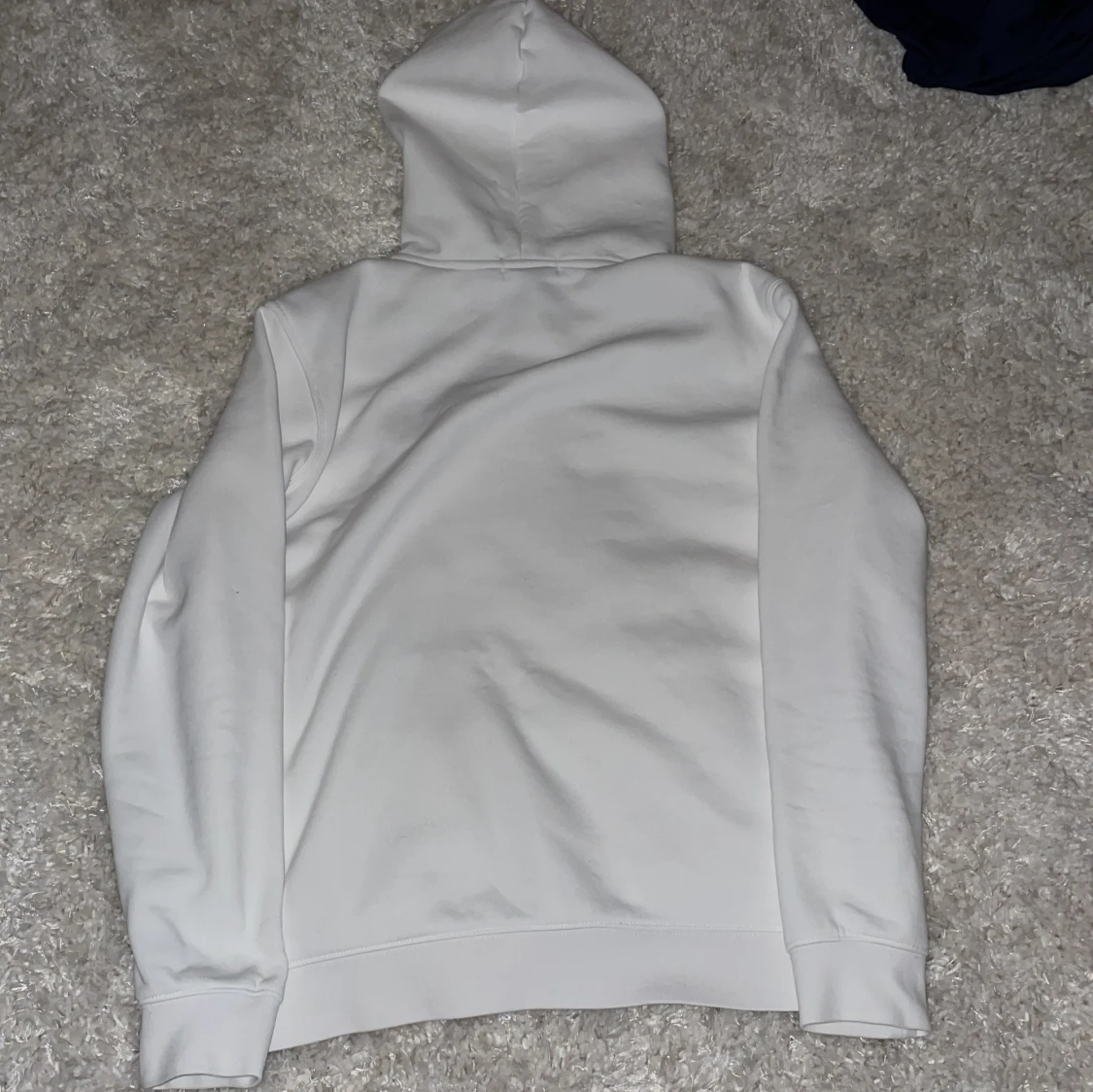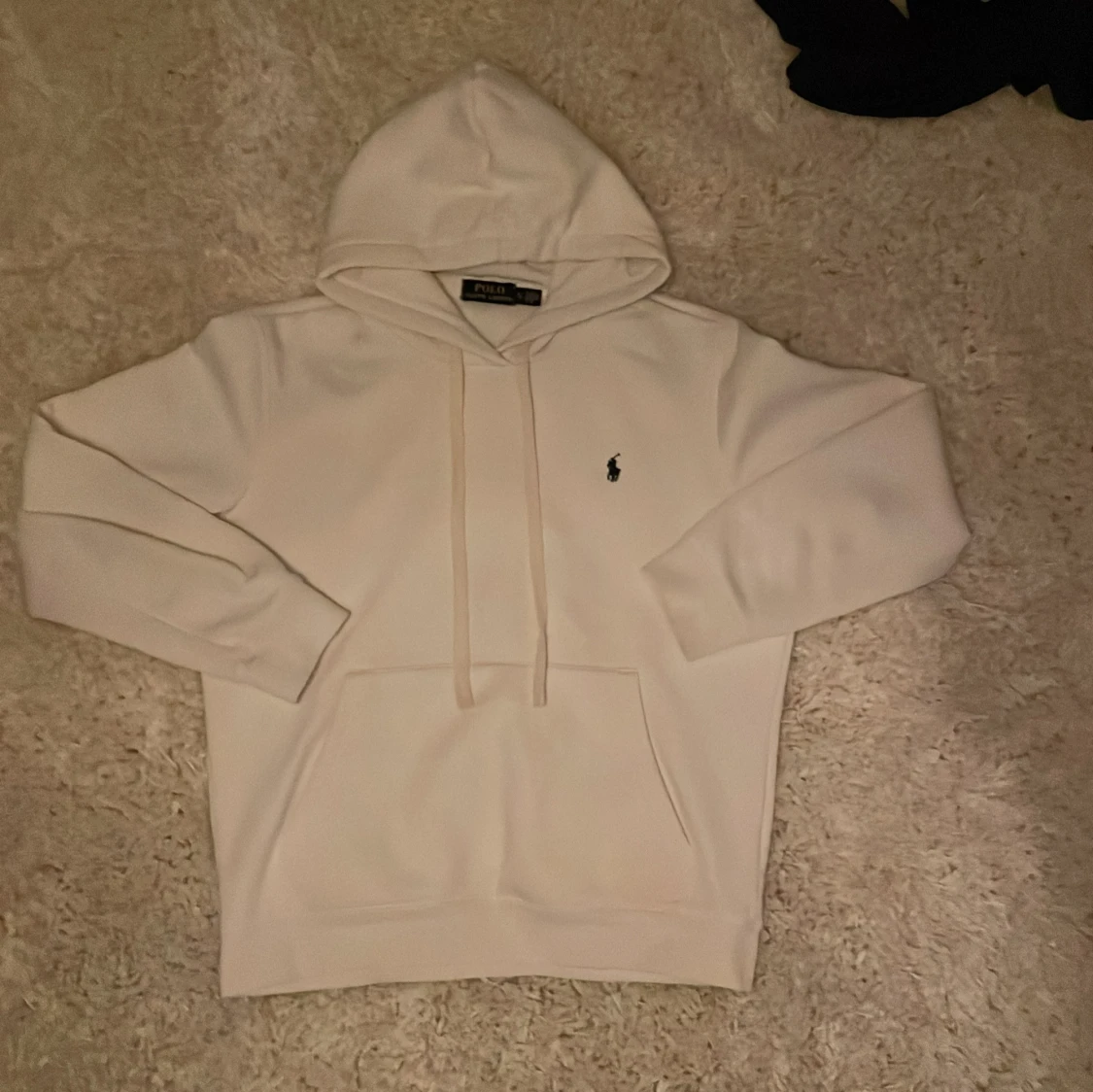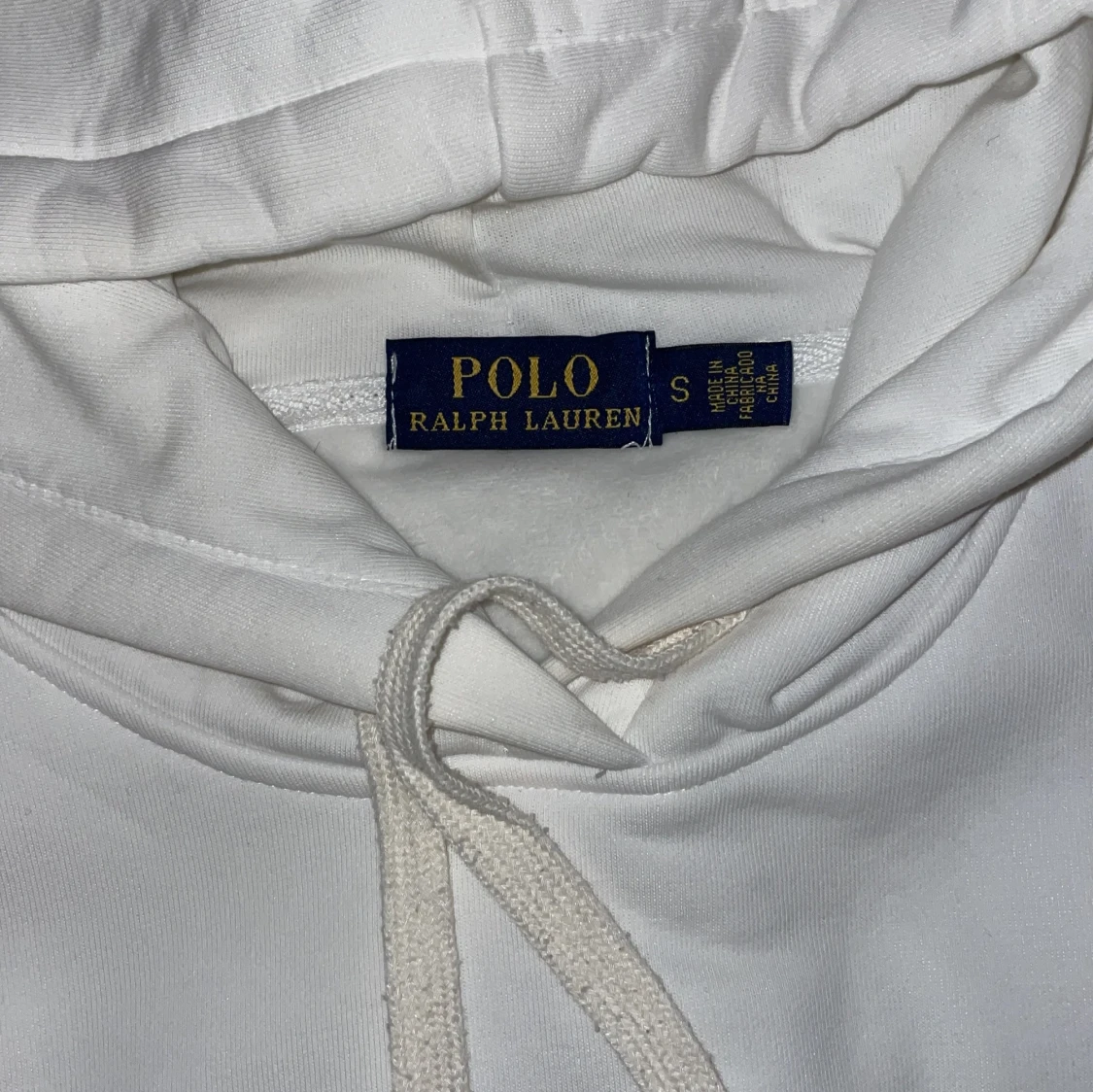 Säljer en stilren vit hoodie från Polo Ralph Lauren med klassisk broderad logga på bröstet. Tröjan har huva med snörning, känguruficka och är tillverkad i mjuk bomullsmix. Perfekt för en clean och avslappnad look.