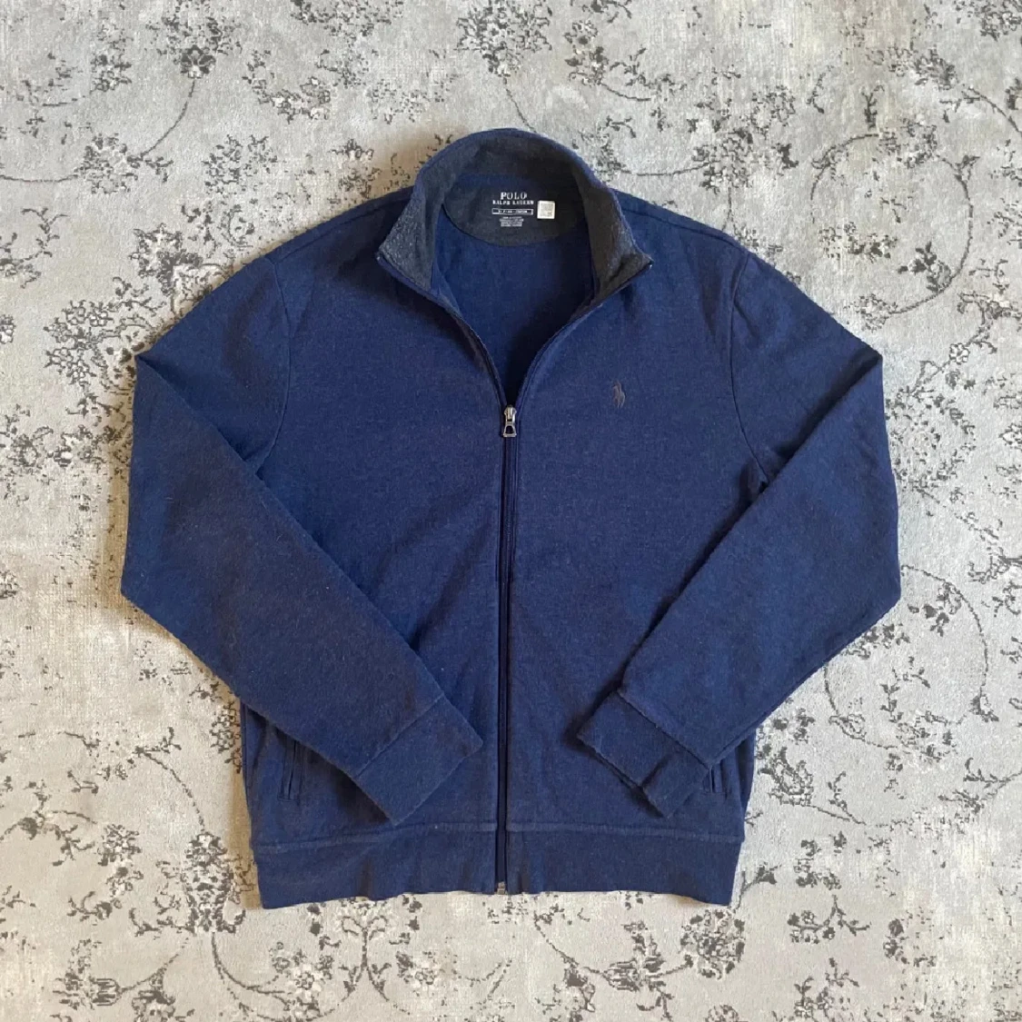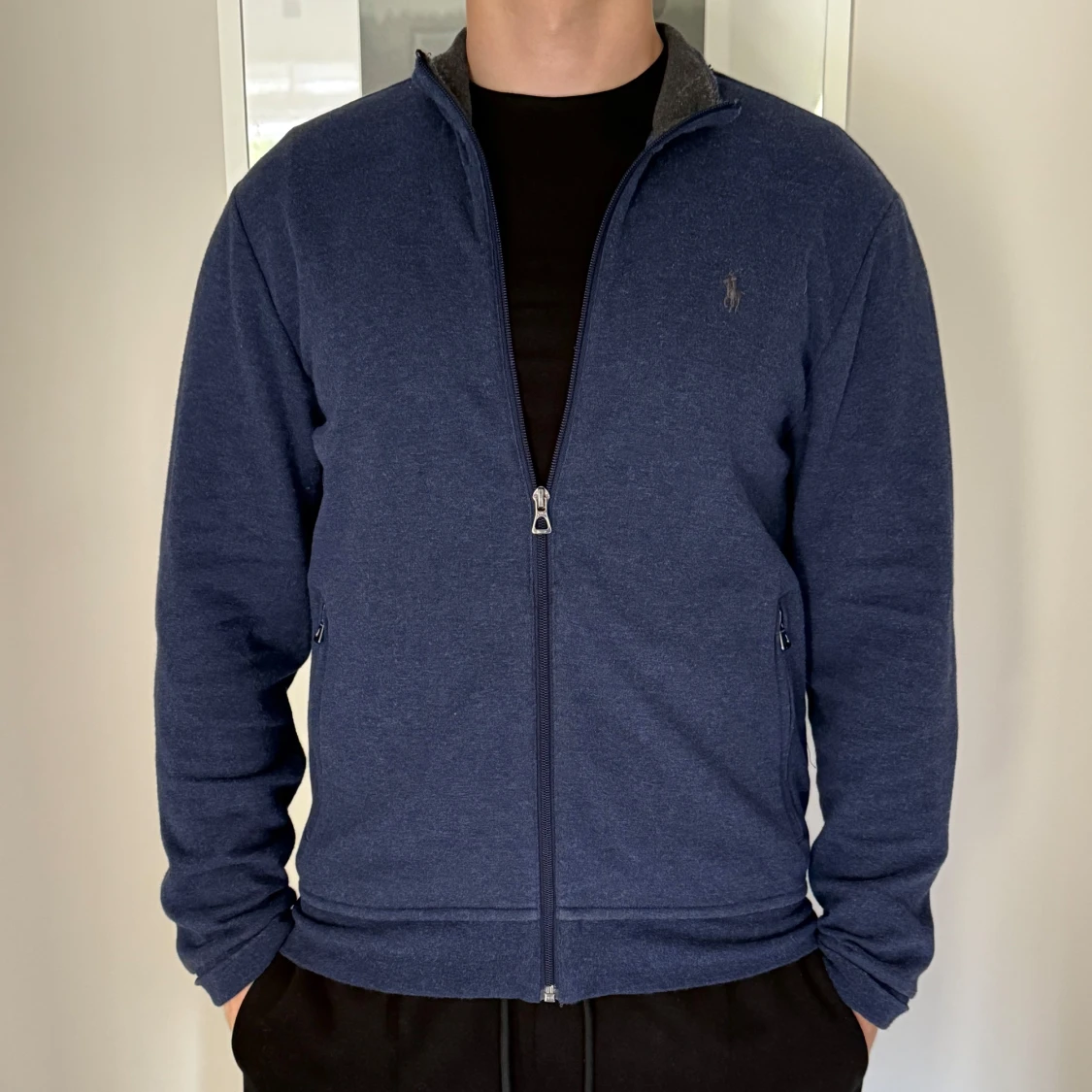 Mörkblå kofta från Polo Ralph Lauren med hel dragkedja framtill och diskret logga på bröstet. Tröjan har ståkrage, långa ärmar och två fickor med dragkedja. Tillverkad i mjuk bomullsmix, perfekt för lager-på-lager under kyliga dagar.