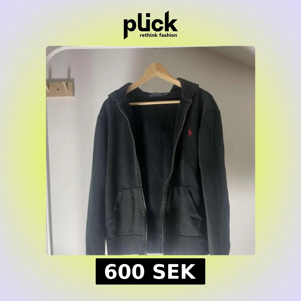 Svart hoodie från Polo Ralph Lauren med dragkedja framtill och huva. Tröjan har två fickor och en röd broderad logga på bröstet. Mjuk insida och klassisk passform, perfekt för en avslappnad stil.